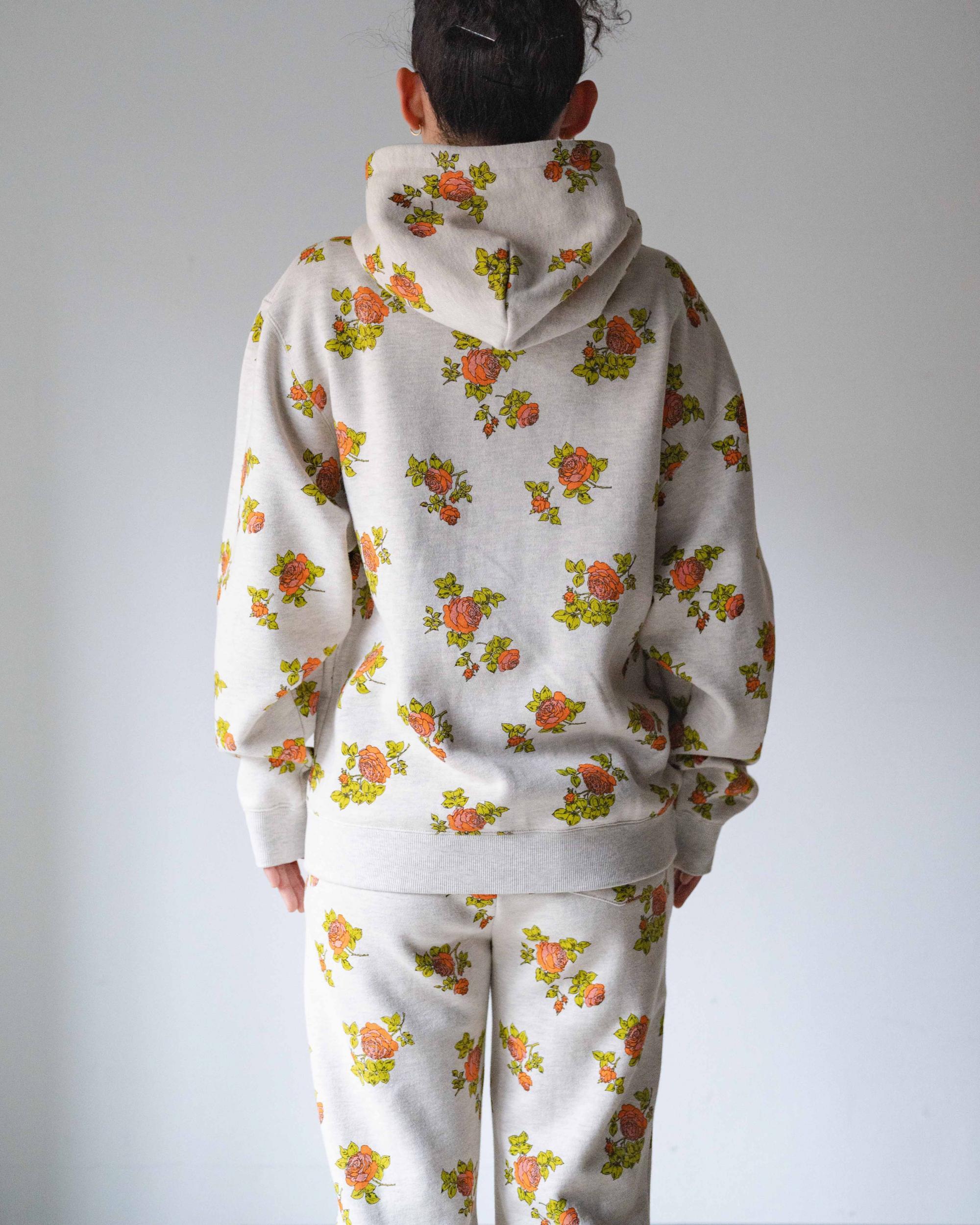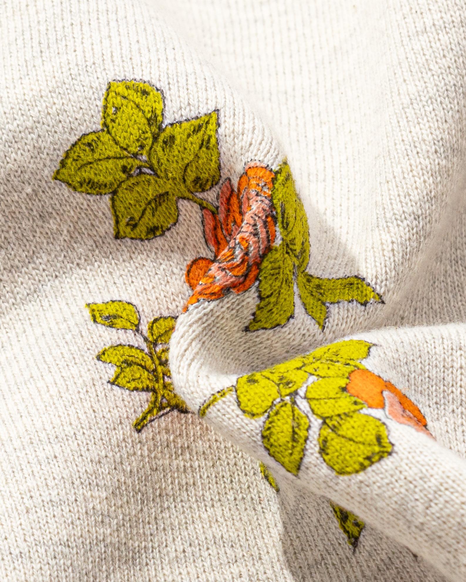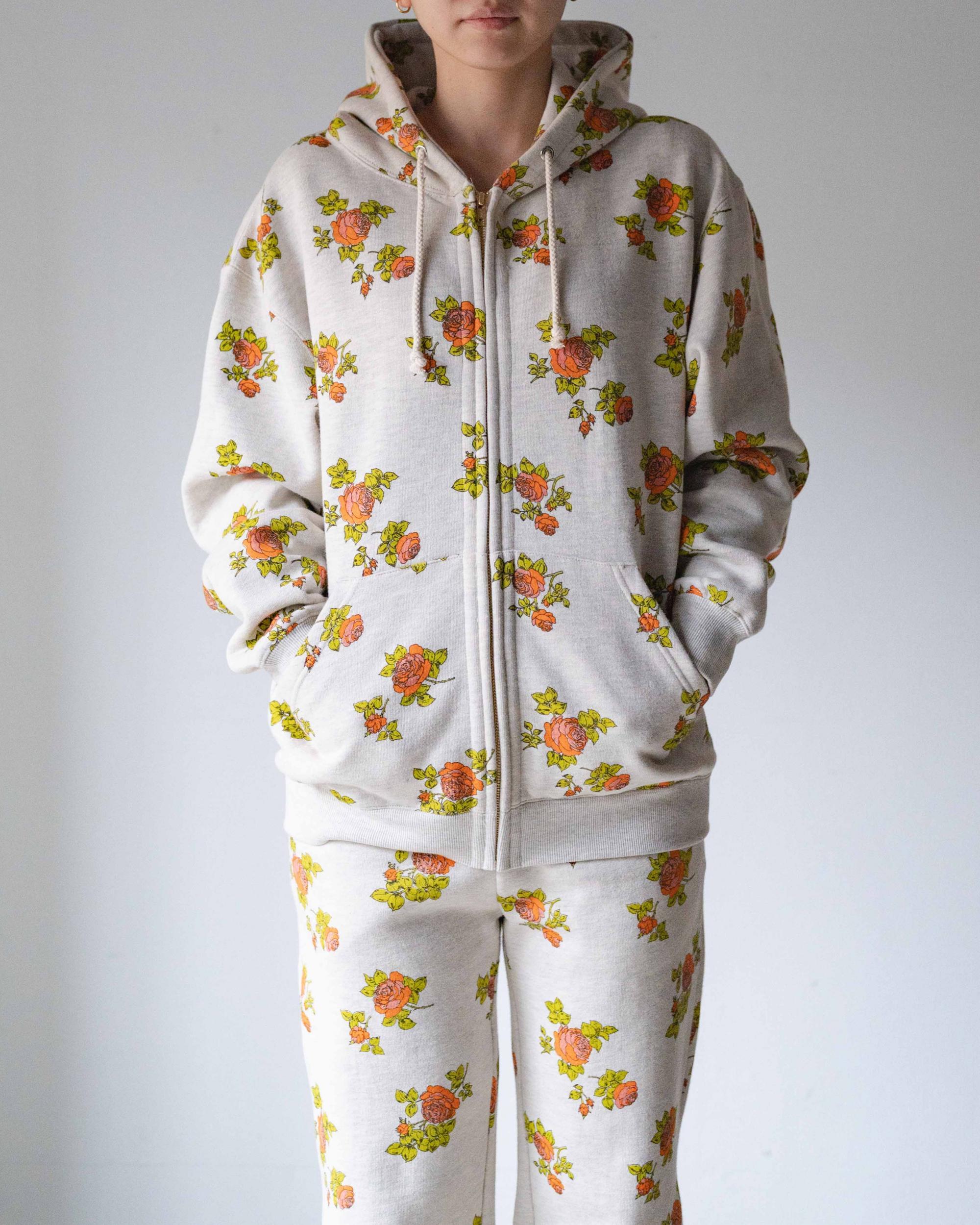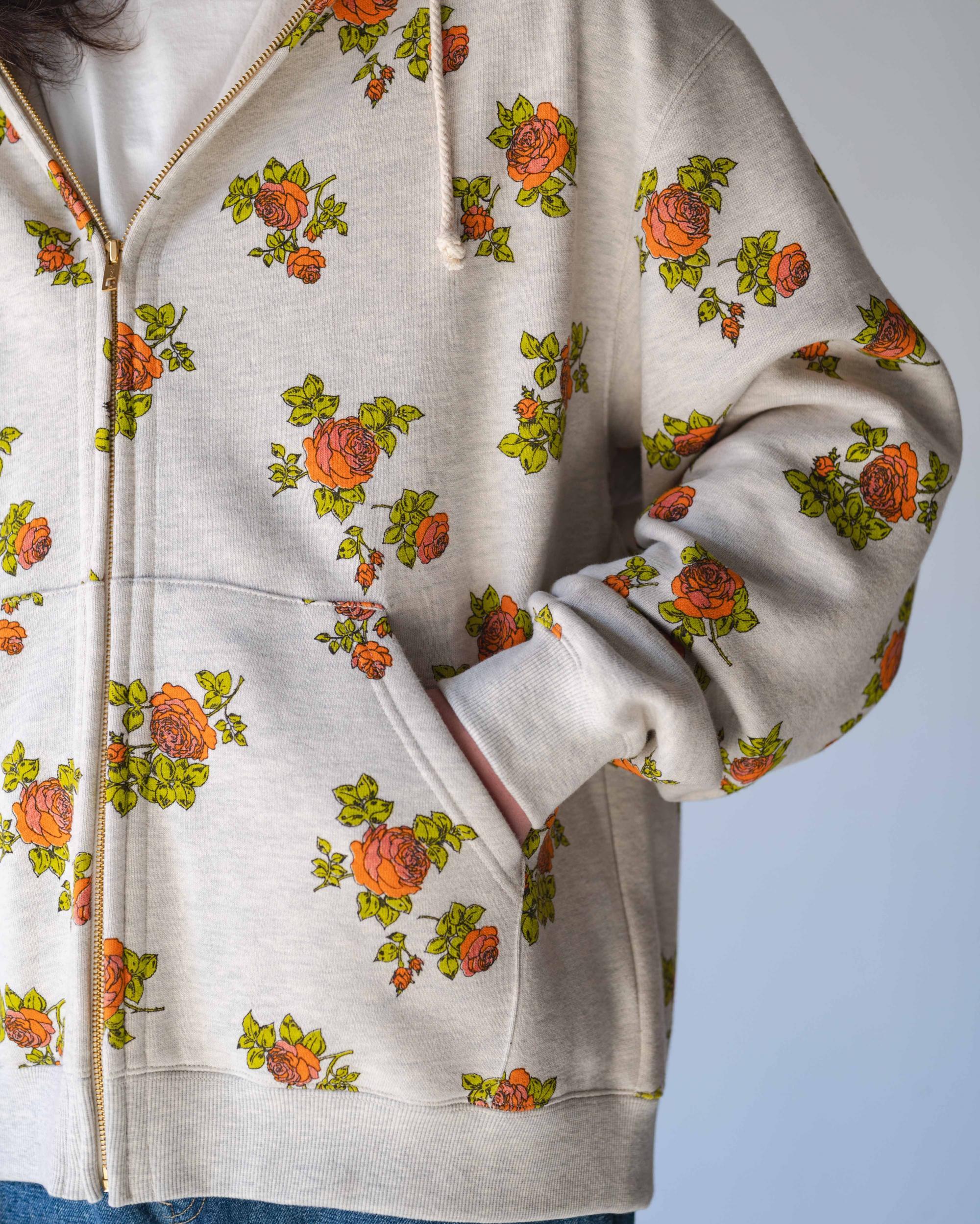 手描きのローズデザインをシルクプリントにて仕上げた総柄コレクション。