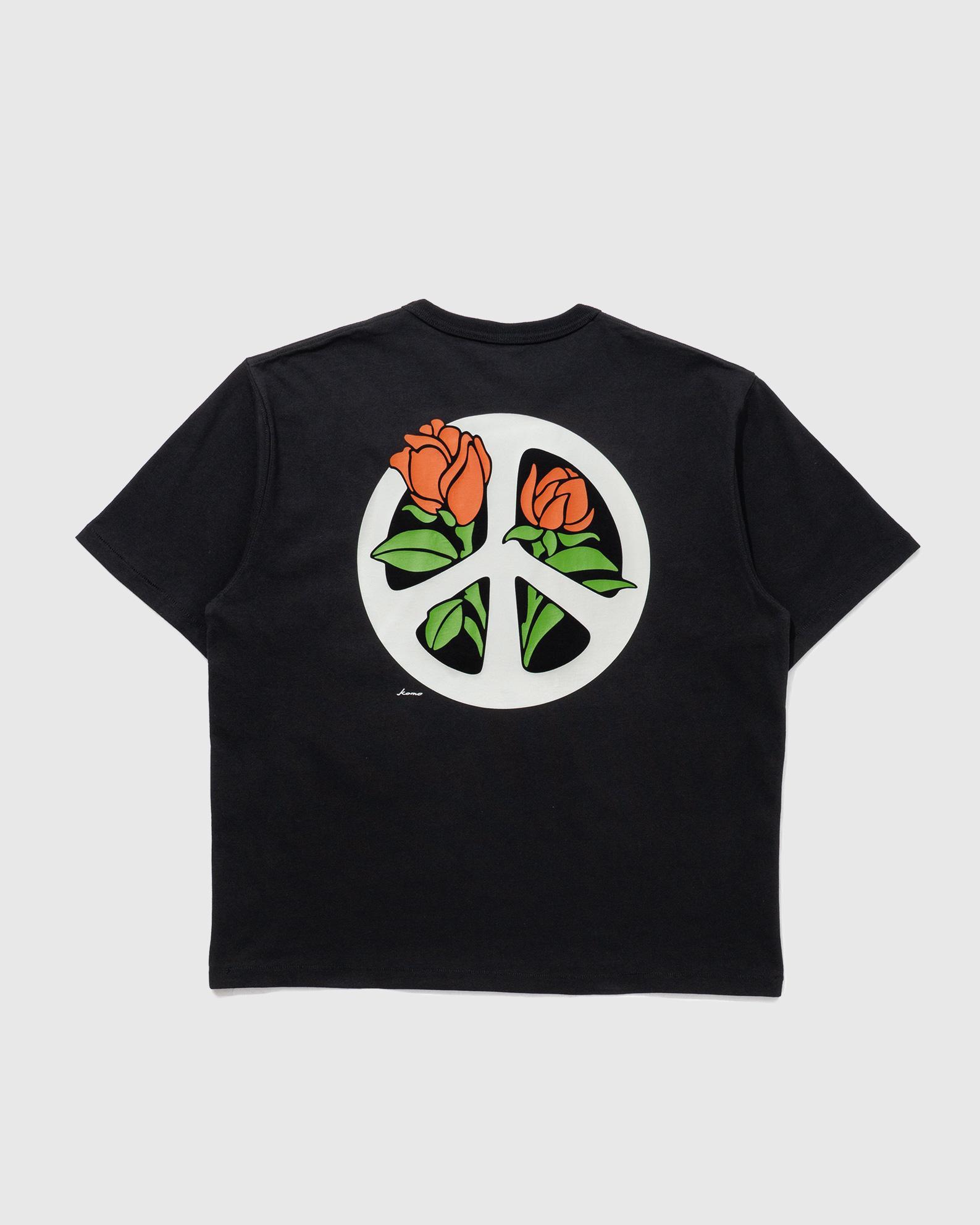 BLOOMING PEACEというタイトルのデザイン。平和の開花という言葉は、戦争や紛争が終わり平和が訪れた状態のことを意味します。