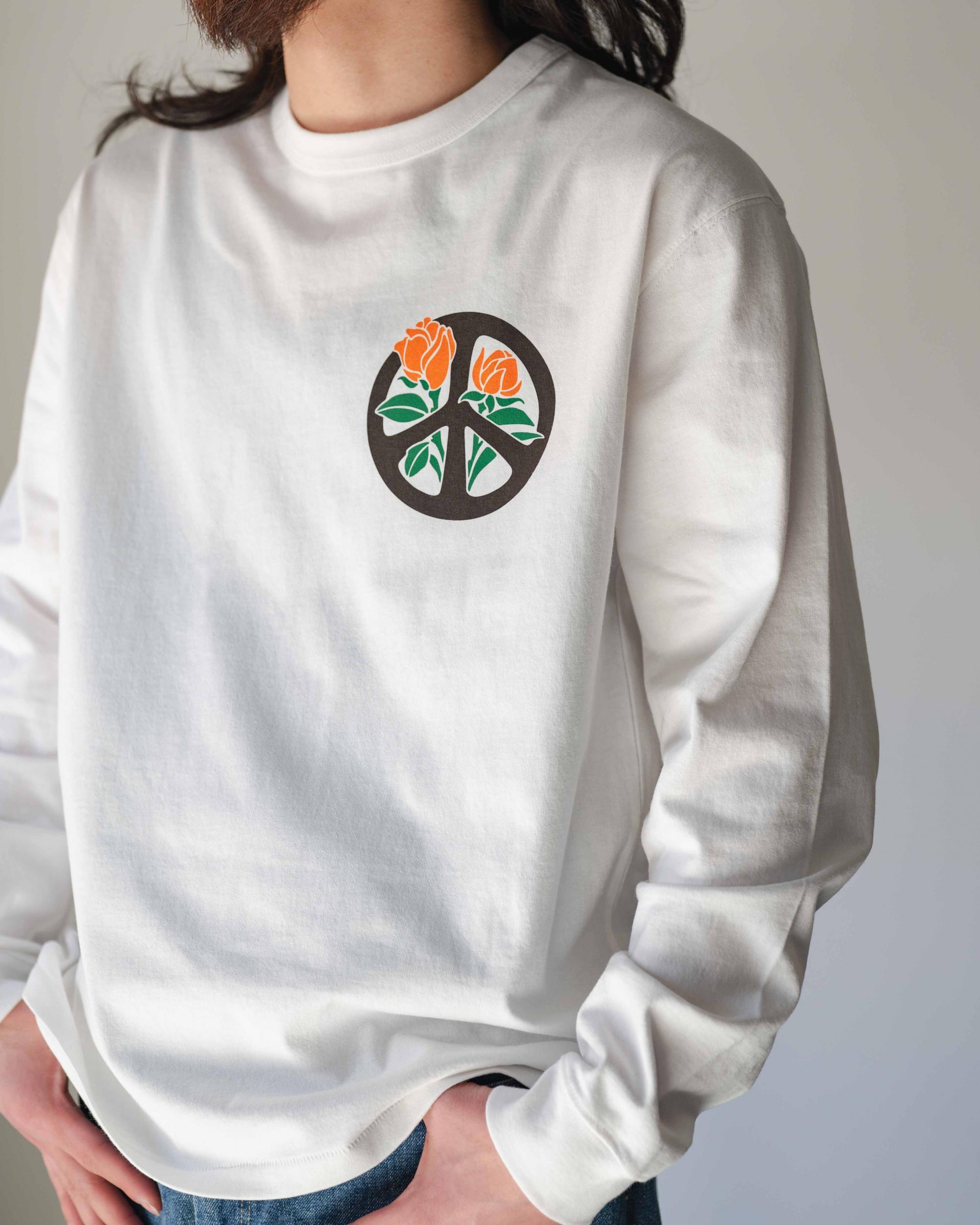 BLOOMING PEACEというタイトルのデザイン。平和の開花という言葉は、戦争や紛争が終わり平和が訪れた状態のことを意味します。
