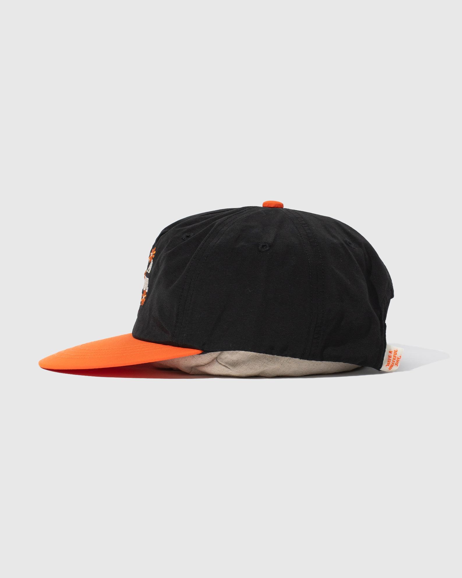 フラワーモチーフを絡めたブランドロゴがアクセントとなった5パネルキャップ。