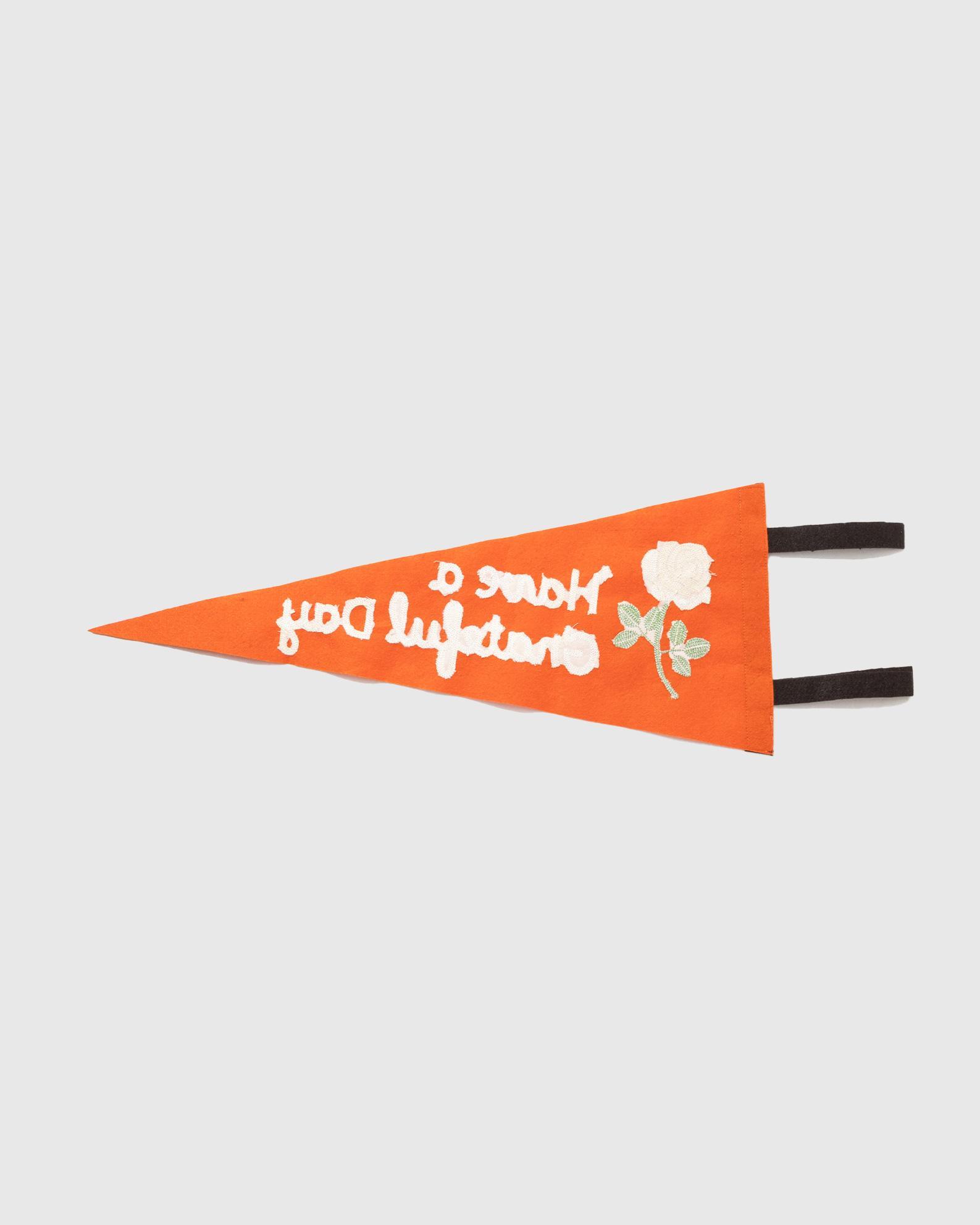 一般的にはプリントされる部分をチェーン刺繍にて仕上げたこだわりのペナントです。ガレージやお部屋のインテリアはもちろん、キャンプの飾りつけなどにもおすすめです。