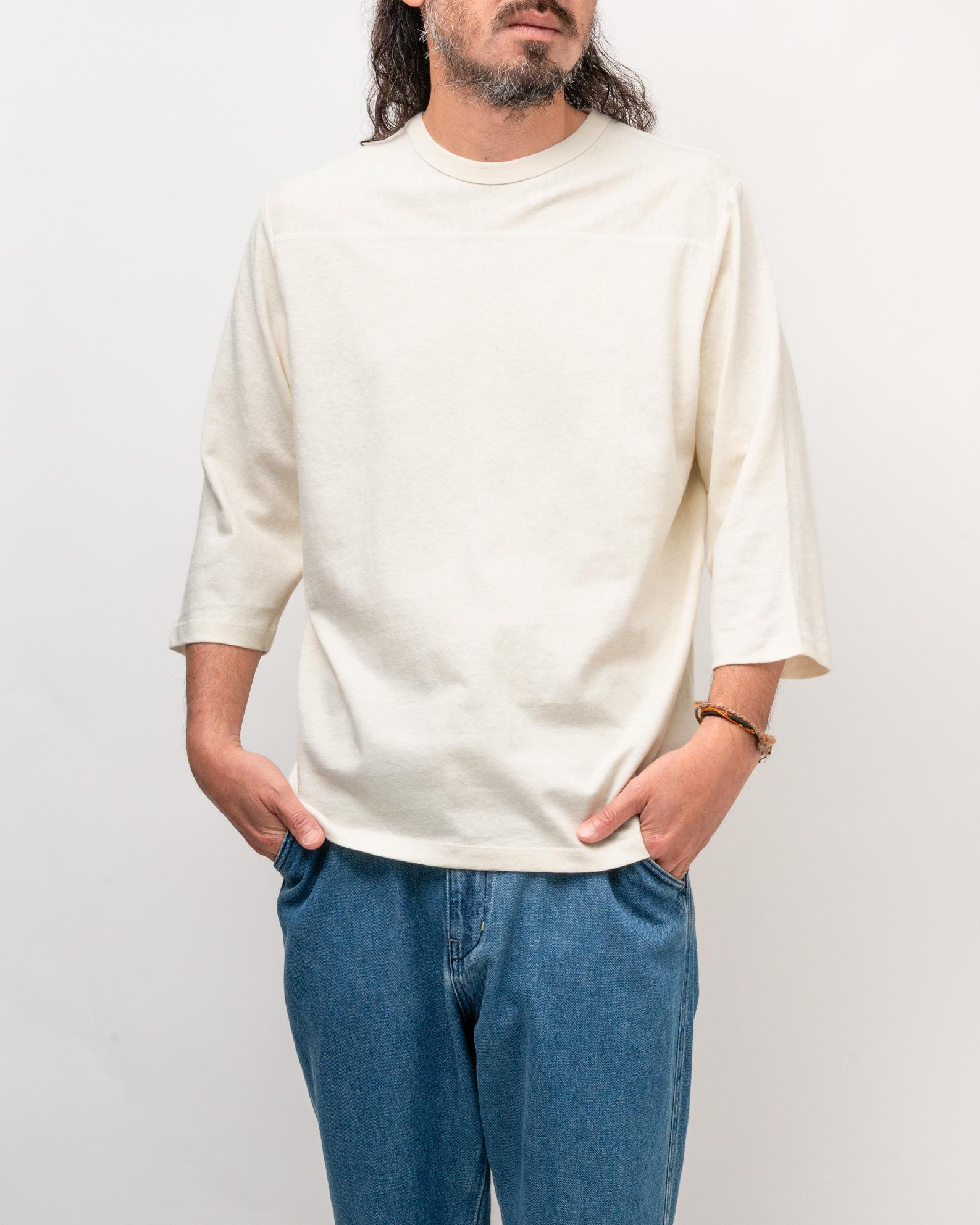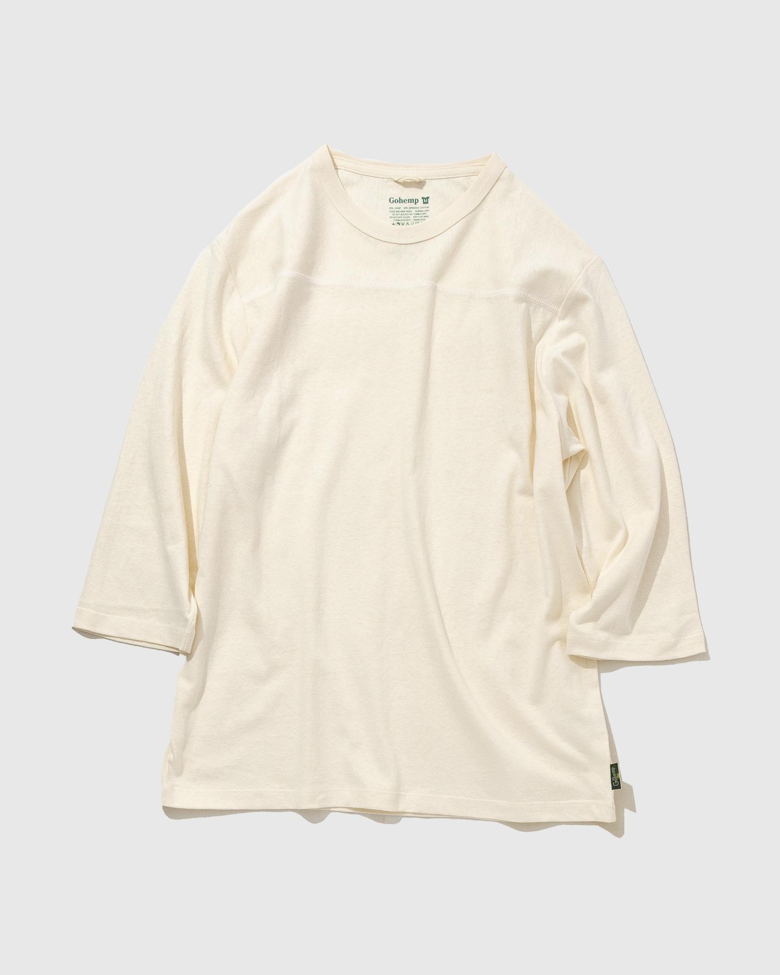GOHEMPで長く愛されるベーシックな7分丈フットボールTシャツです。