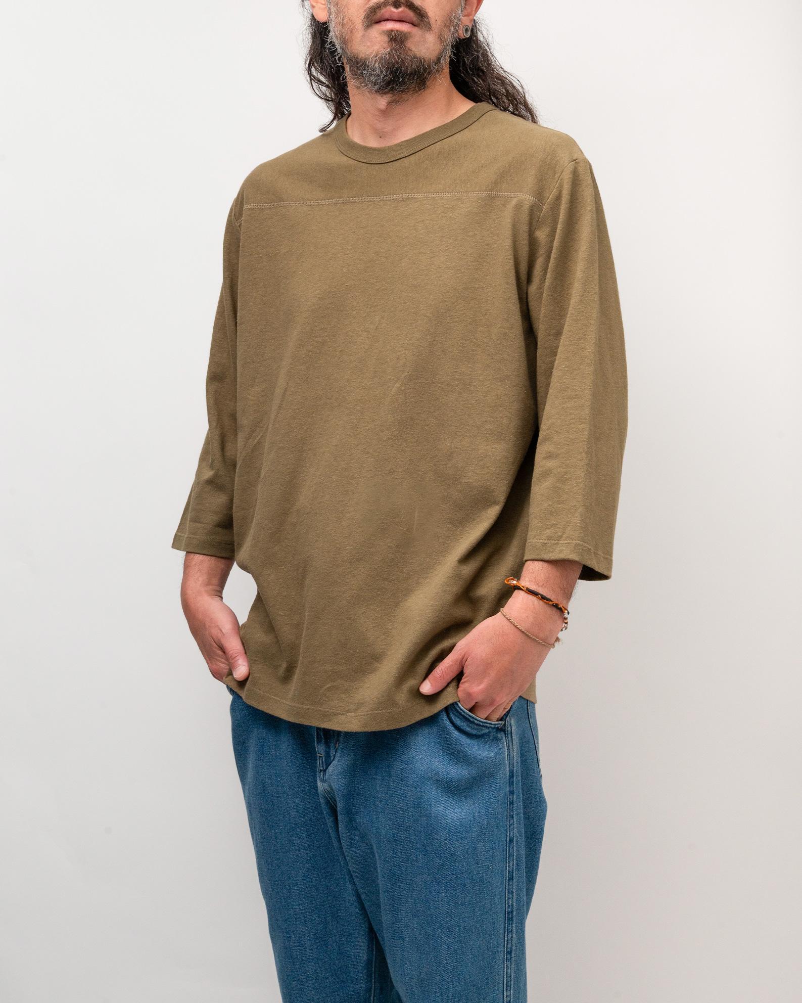 GOHEMPで長く愛されるベーシックな7分丈フットボールTシャツです。