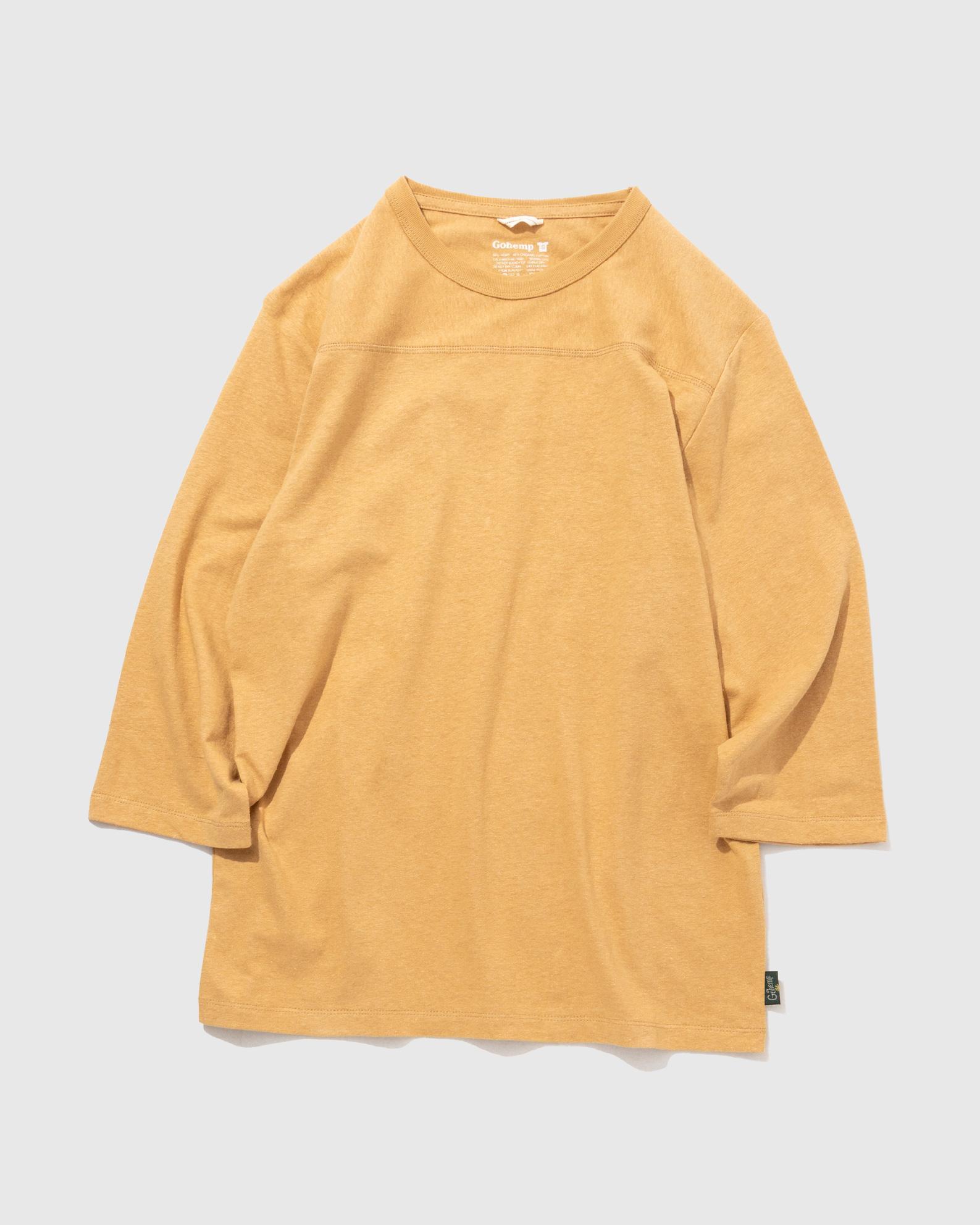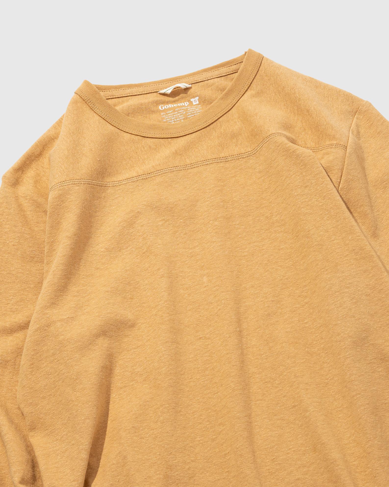 GOHEMPで長く愛されるベーシックな7分丈フットボールTシャツです。