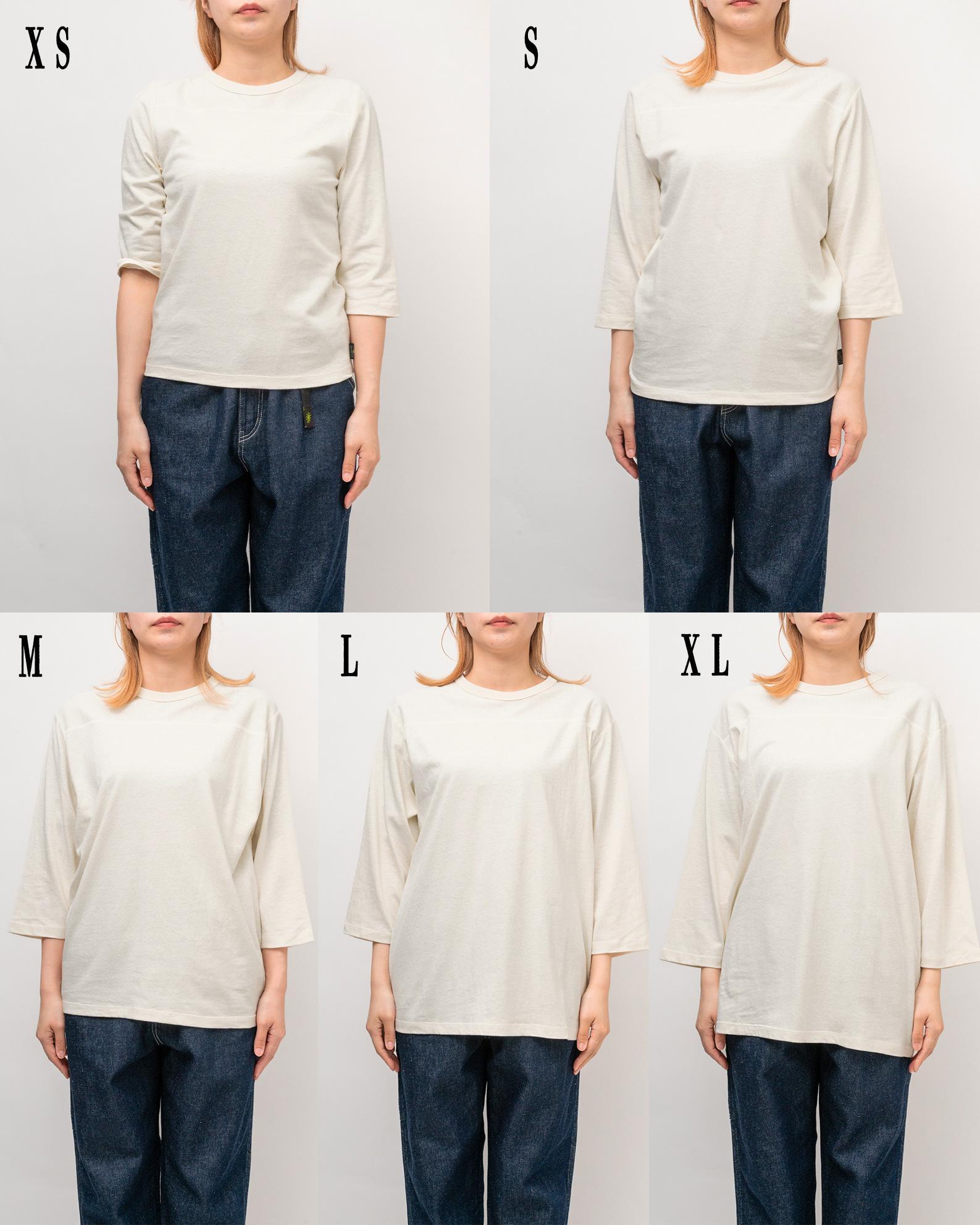 GOHEMPで長く愛されるベーシックな7分丈フットボールTシャツです。