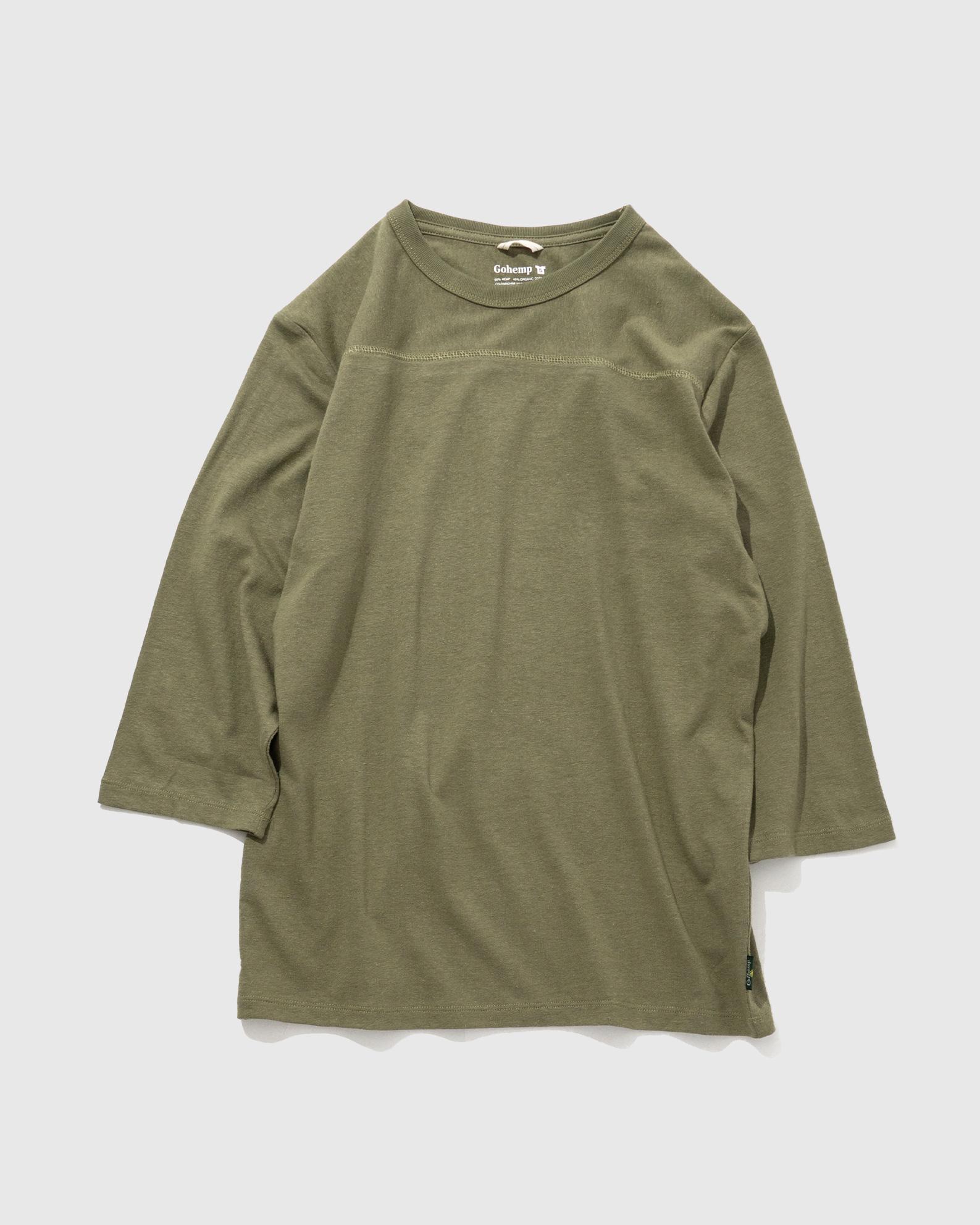 GOHEMPで長く愛されるベーシックな7分丈フットボールTシャツです。