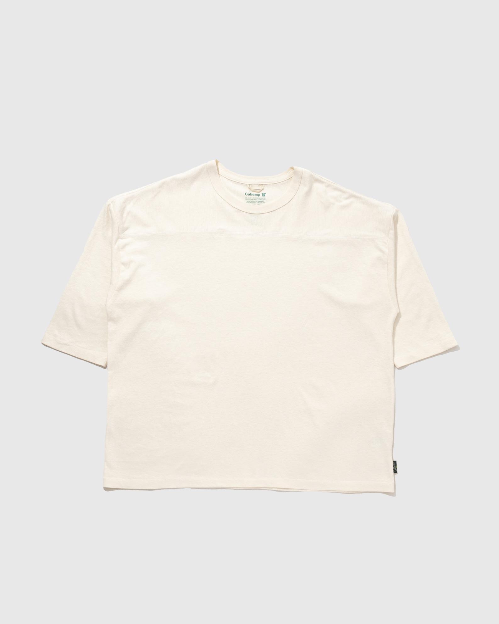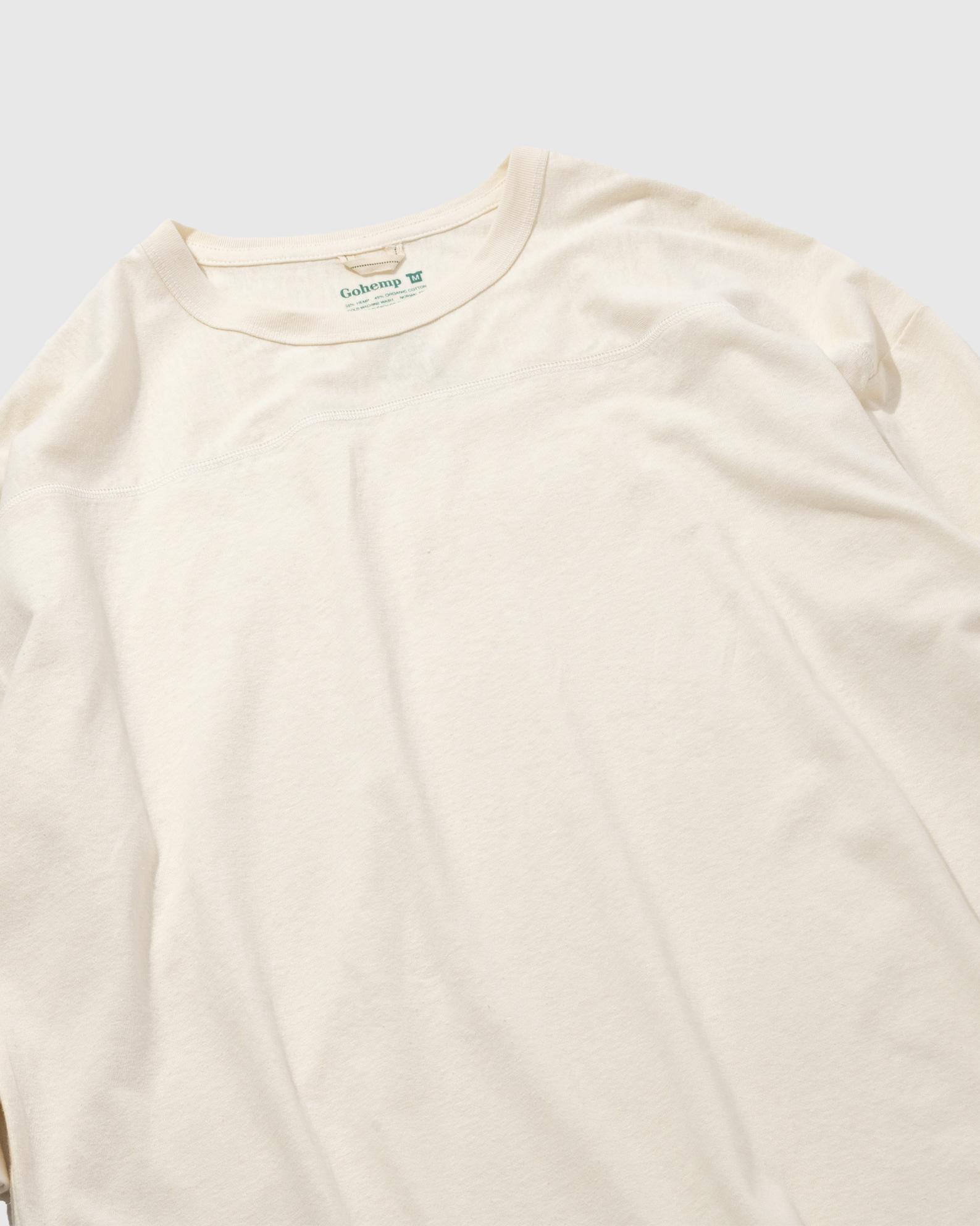 定番のベーシックフットボールTシャツの袖丈と着丈をキープしたまま身幅と袖幅をワイドに仕上げたワイドフットボールTシャツです。ヘンプ55%オーガニックコットン45%という混率から成る、拘りのオリジナル生地を使用した定番シリーズです。