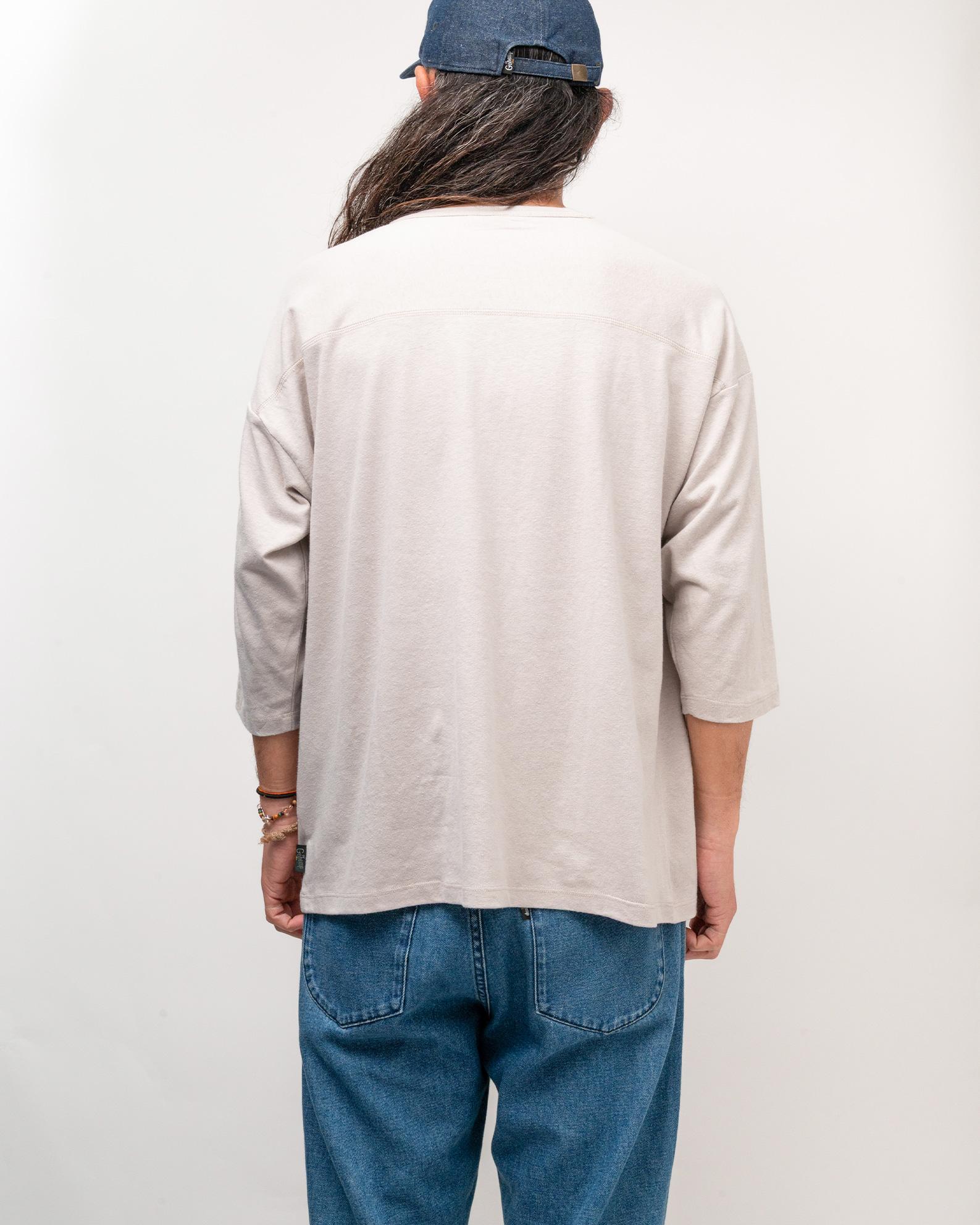 定番のベーシックフットボールTシャツの袖丈と着丈をキープしたまま身幅と袖幅をワイドに仕上げたワイドフットボールTシャツです。ヘンプ55%オーガニックコットン45%という混率から成る、拘りのオリジナル生地を使用した定番シリーズです。