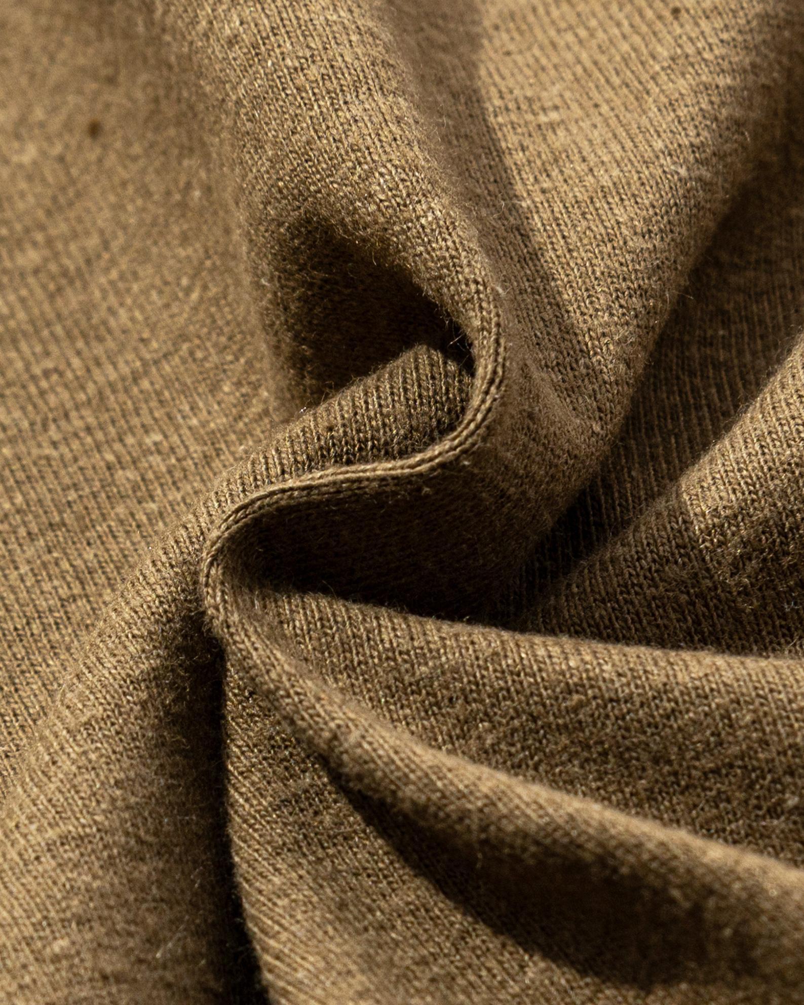 ヘンプによるナチュラルな表情と吸水速乾に優れたドライな質感、さらにはオーガニックコットンの柔らかな肌触りが特徴です。