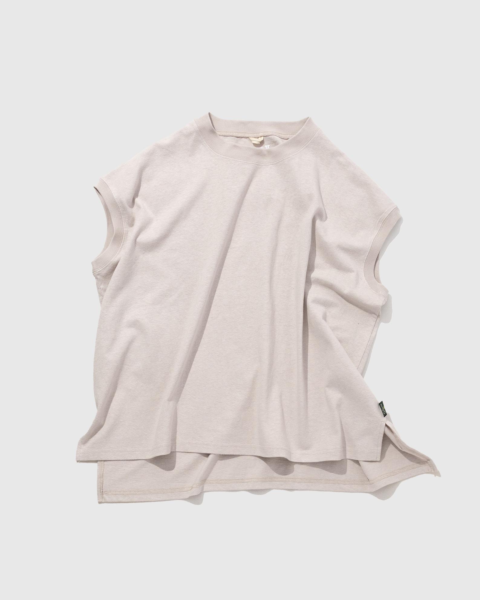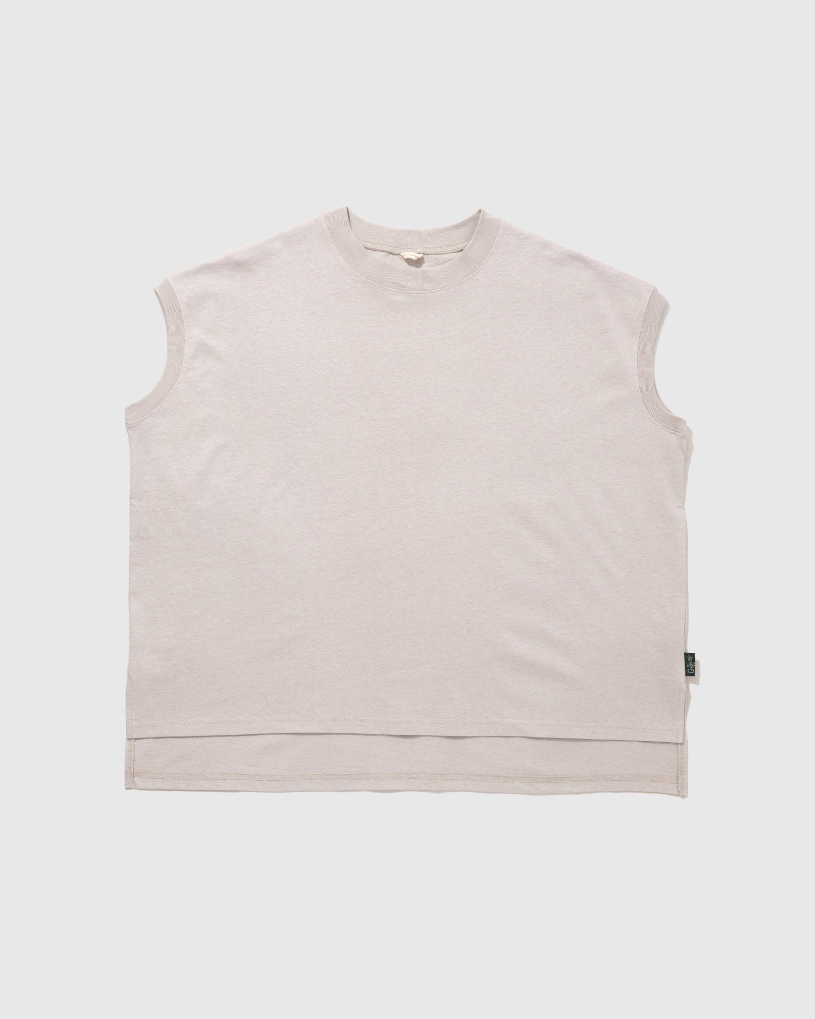 程よくゆとりを持たせリラックスした着心地のスリーブレスTシャツ。