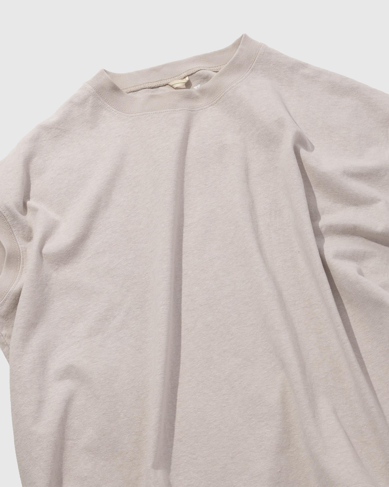 ヘンプによるナチュラルな表情と吸水速乾に優れたドライな質感、さらにはオーガニックコットンの柔らかな肌触りが特徴です。