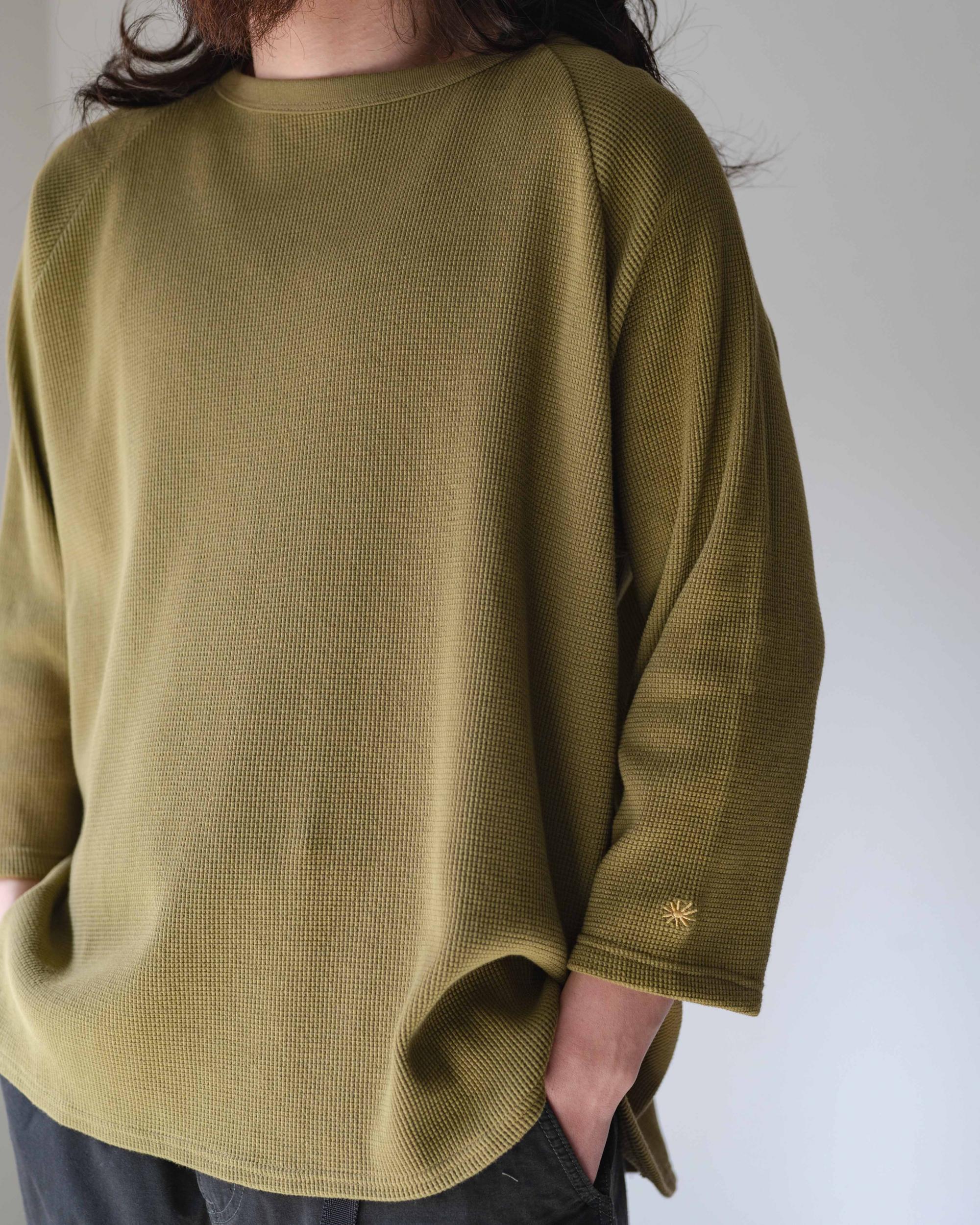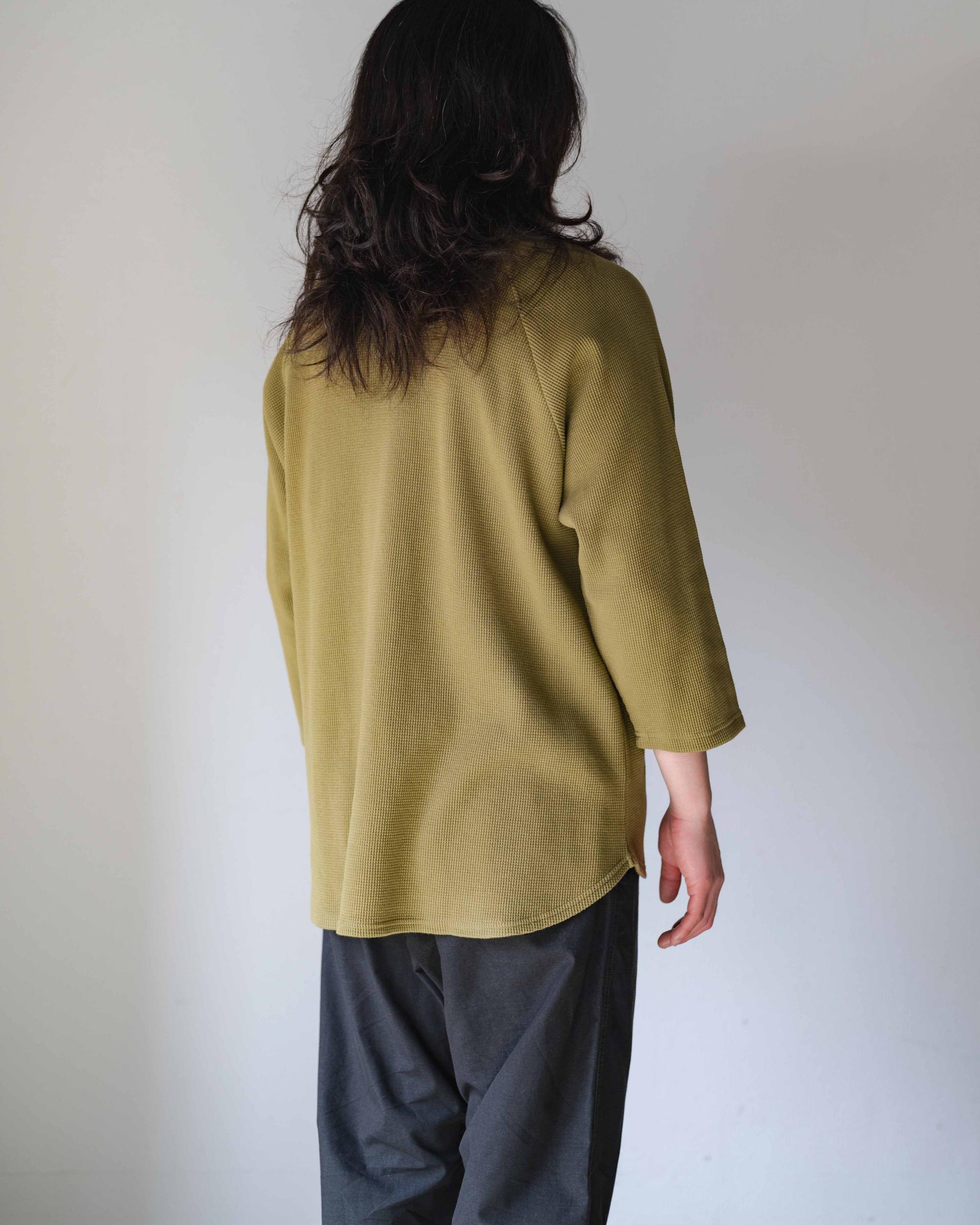 ミニワッフル素材の吸汗の働きに加え、ヘンプの特性である速乾により、暑い夏でも汗のべたつき抑え快適な着心地をキープします。天然の機能性を備えた日常からアウトドアまで幅広いシーンで活用できるアイテムです。