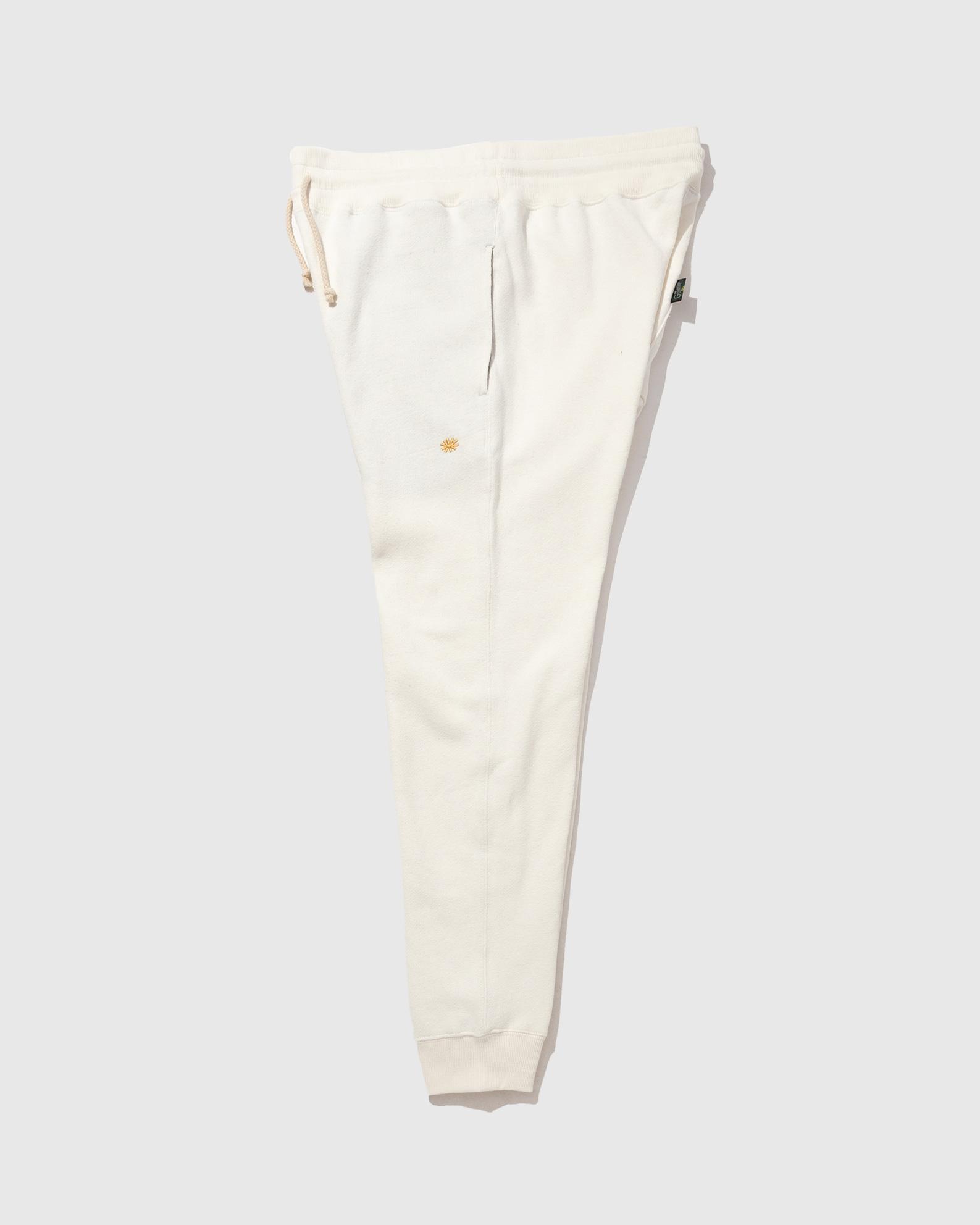 また、9分丈のレングスで裾をリブ仕様にすることで部屋着感の無い、すっきりとスタイリッシュな印象です。