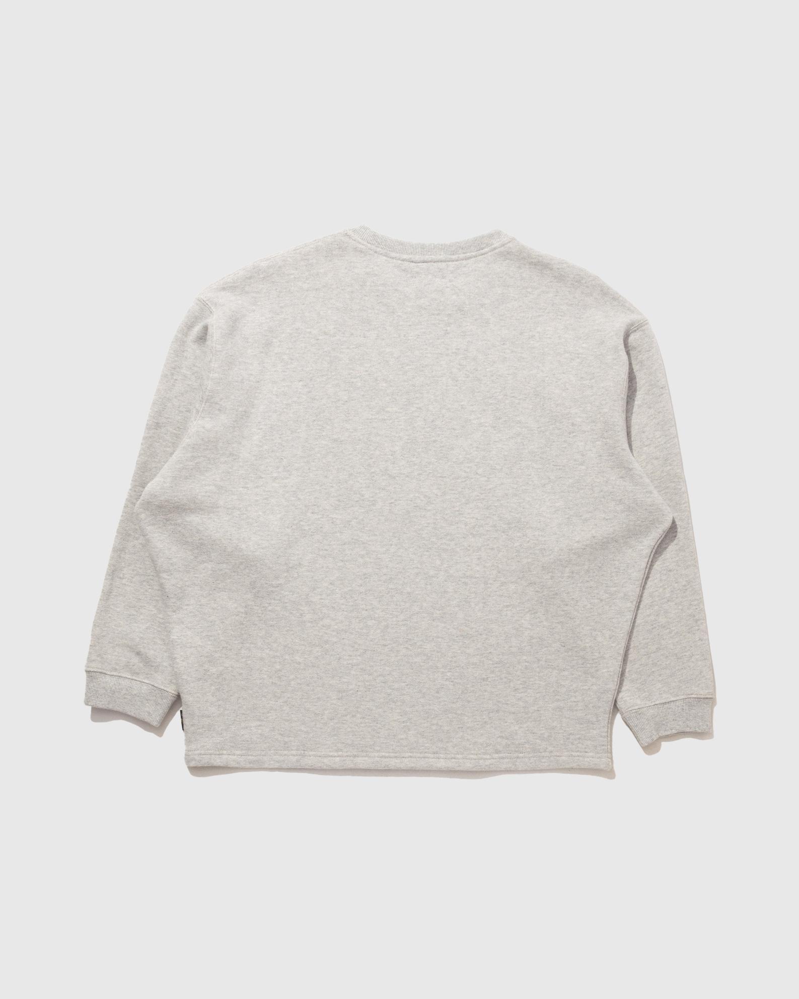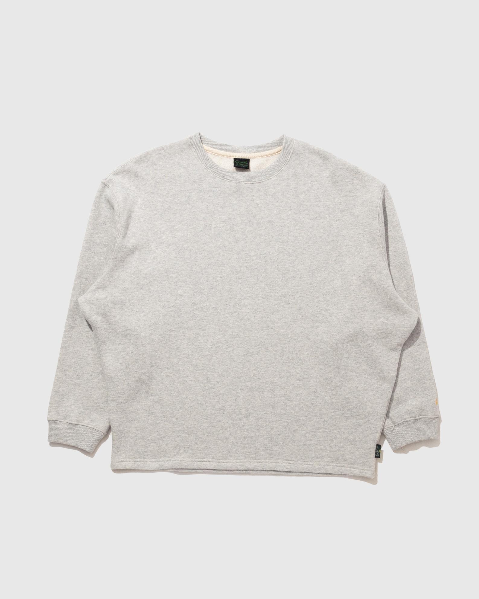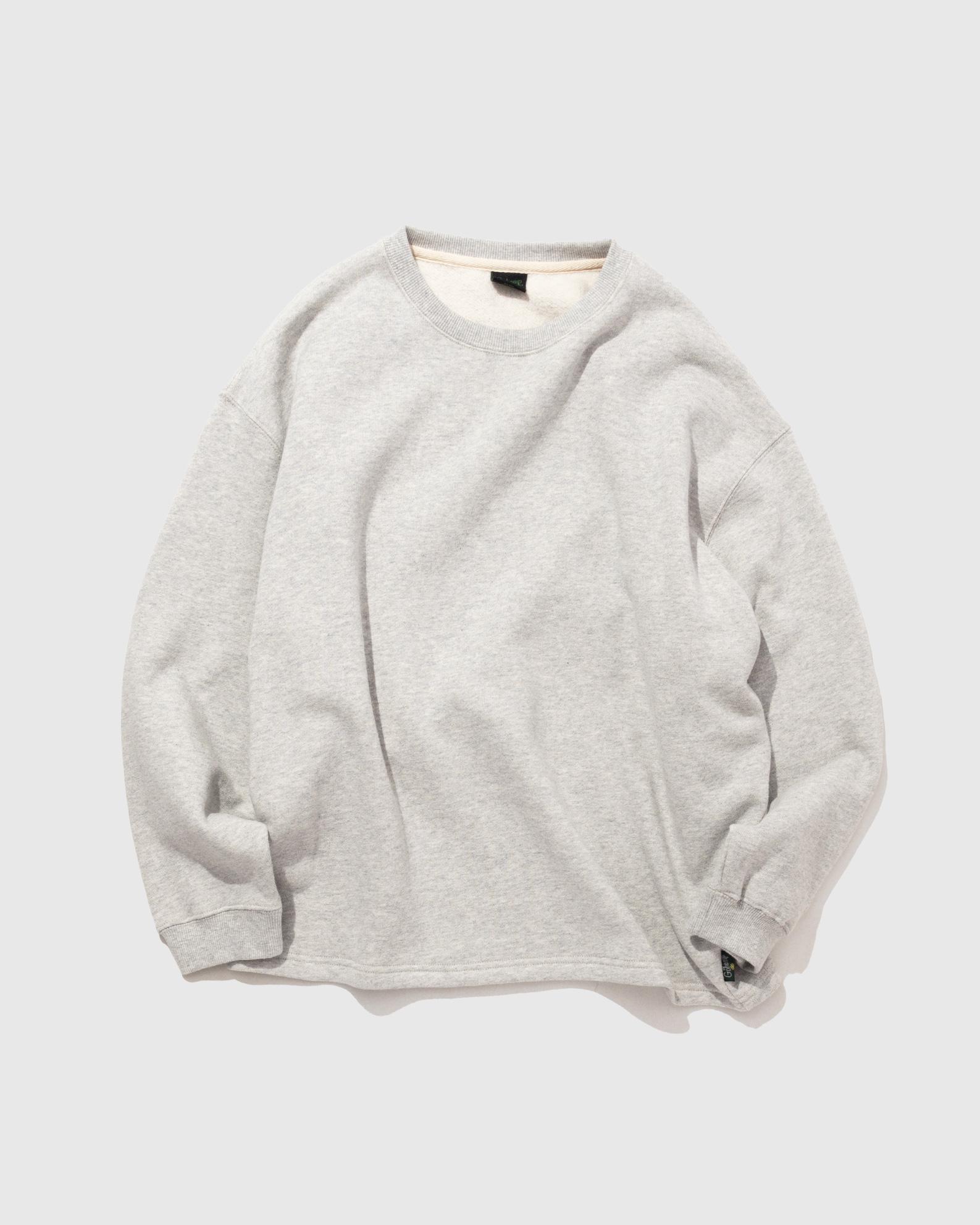 一般的なカレッヂスウェットのディテールとは違い裾のリブを除いたすっきりとしたデザインが特徴です。