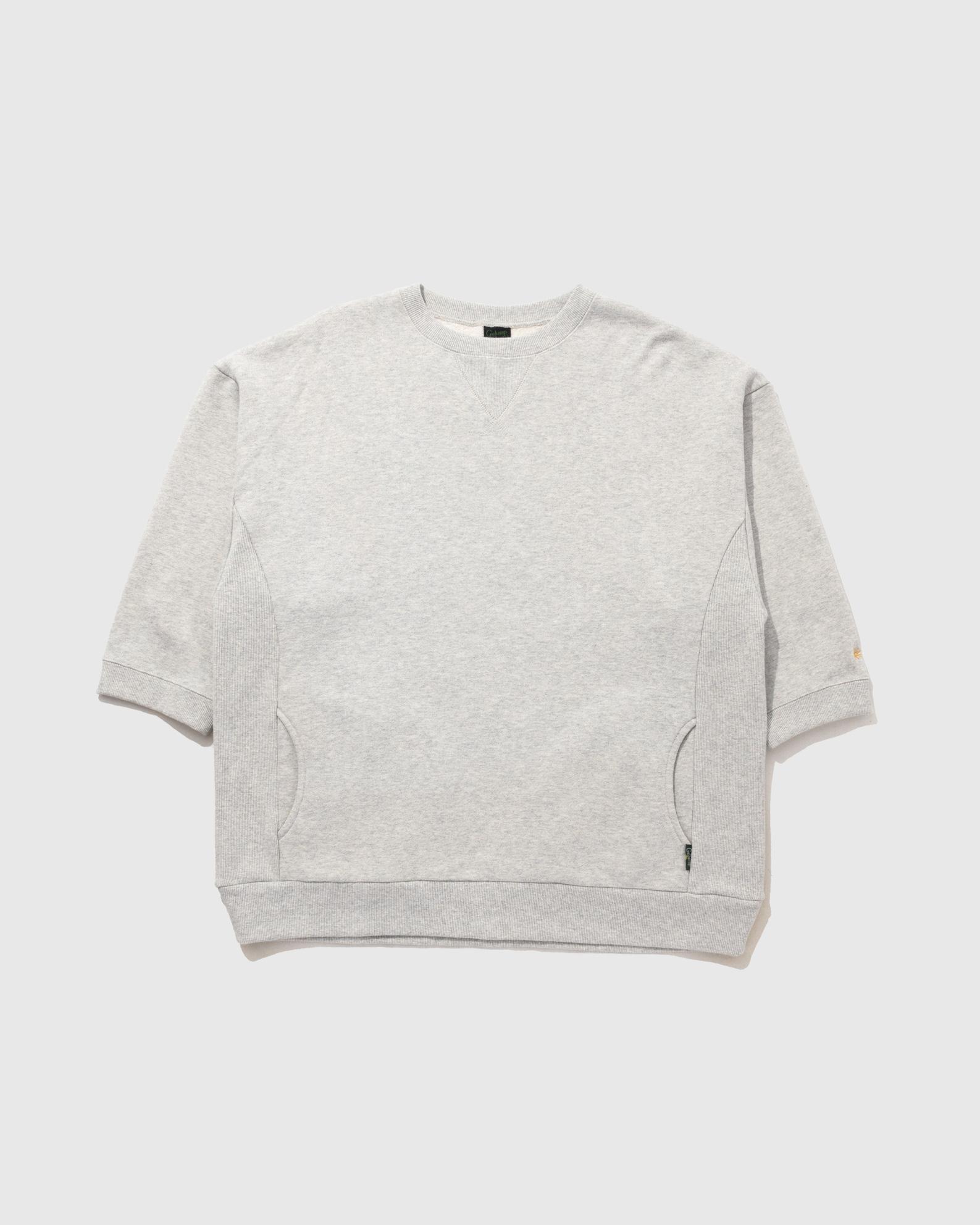 袖を半端丈に設定し、ガゼットやサイドパネルなど随所にアクセントを加えたクルーネックシャツです。身幅が広くやや着丈が長いルーズシルエットで、適正サイズを選んでいただいてもトレンド感のあるゆとりを体感していただけます。