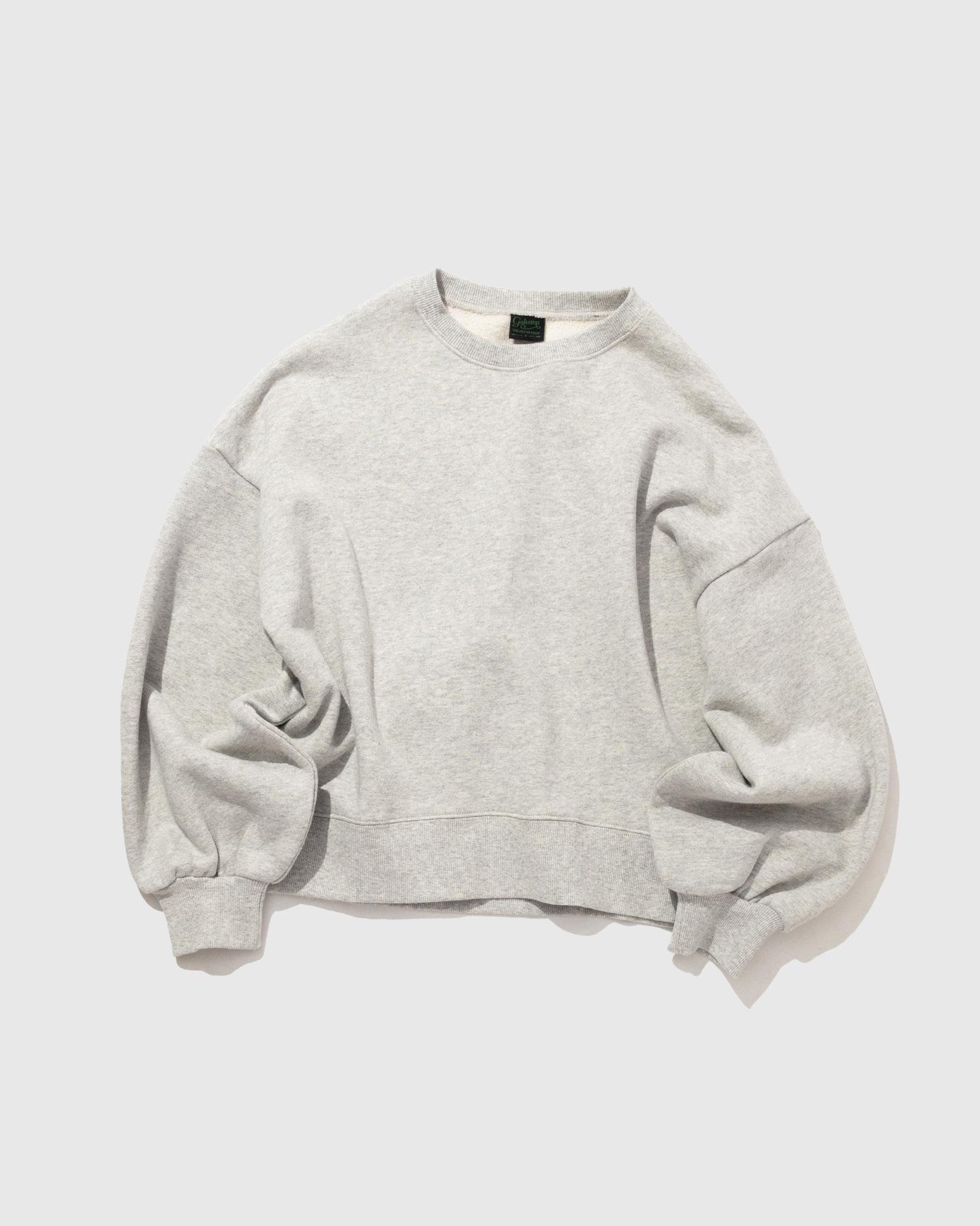 パフスリーブとドロップショルダーデザインのフェミニンな要素が詰まったレディーススウェットシャツです。プッシュアップして袖にボリュームを出して着て頂いてもおすすめです。