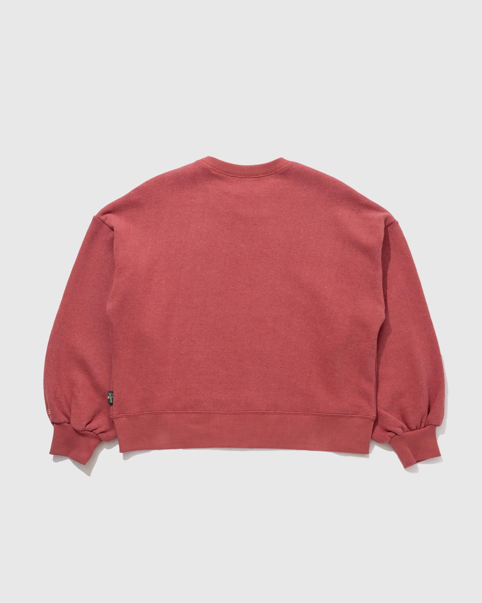 パフスリーブとドロップショルダーデザインのフェミニンな要素が詰まったレディーススウェットシャツです。プッシュアップして袖にボリュームを出して着て頂いてもおすすめです。