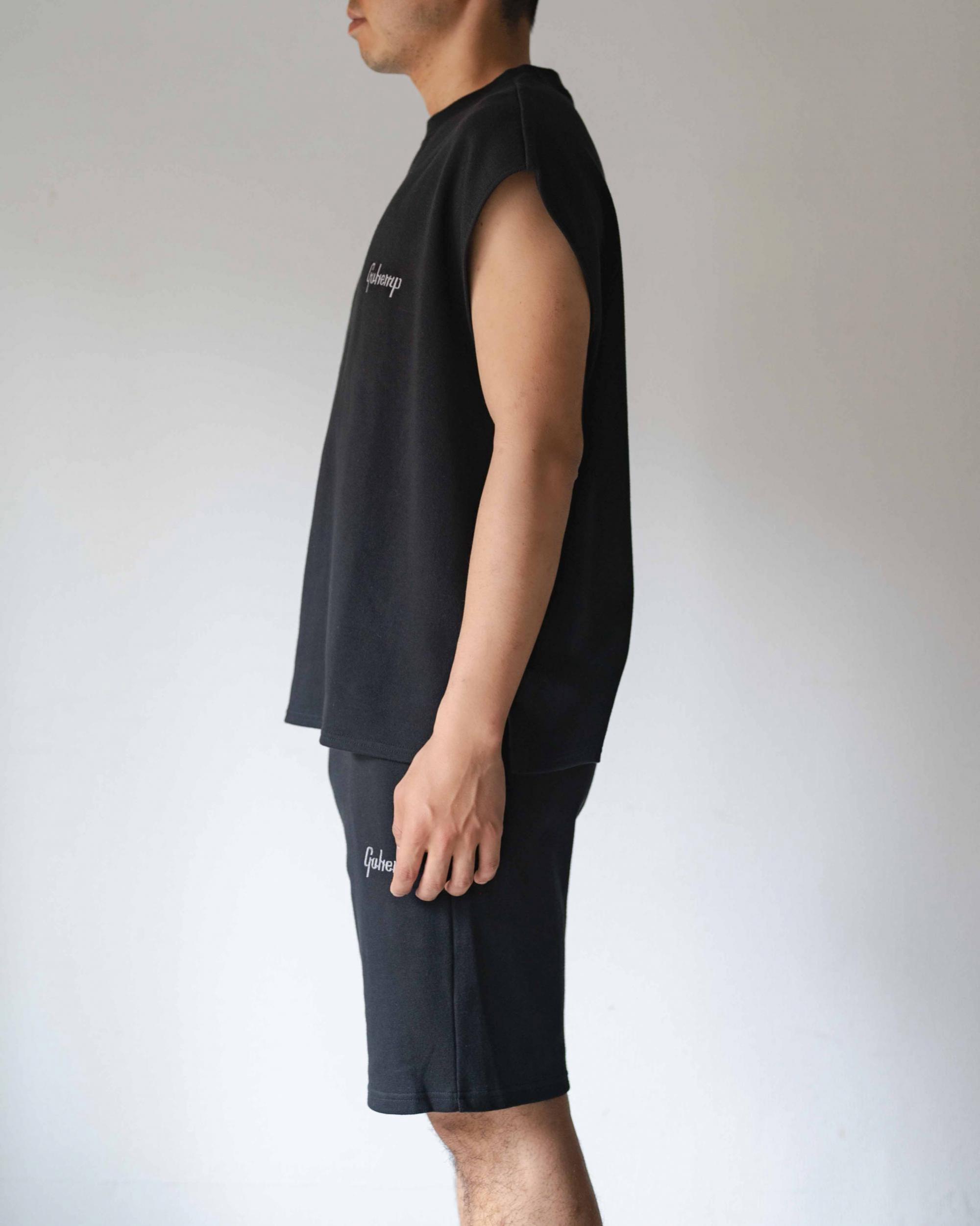 また、ヘンプのドライタッチな肌触りにオーガニックコットンによる柔らかさを加え、直接肌に触れても気持ちの良い生地に仕上げています。ワイドシルエットをベースとし、スリーブレスに仕立てたクルーネックスウェット。