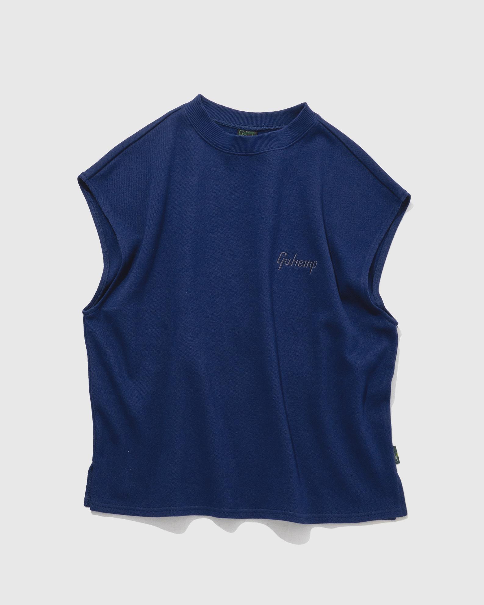 また、ヘンプのドライタッチな肌触りにオーガニックコットンによる柔らかさを加え、直接肌に触れても気持ちの良い生地に仕上げています。ワイドシルエットをベースとし、スリーブレスに仕立てたクルーネックスウェット。