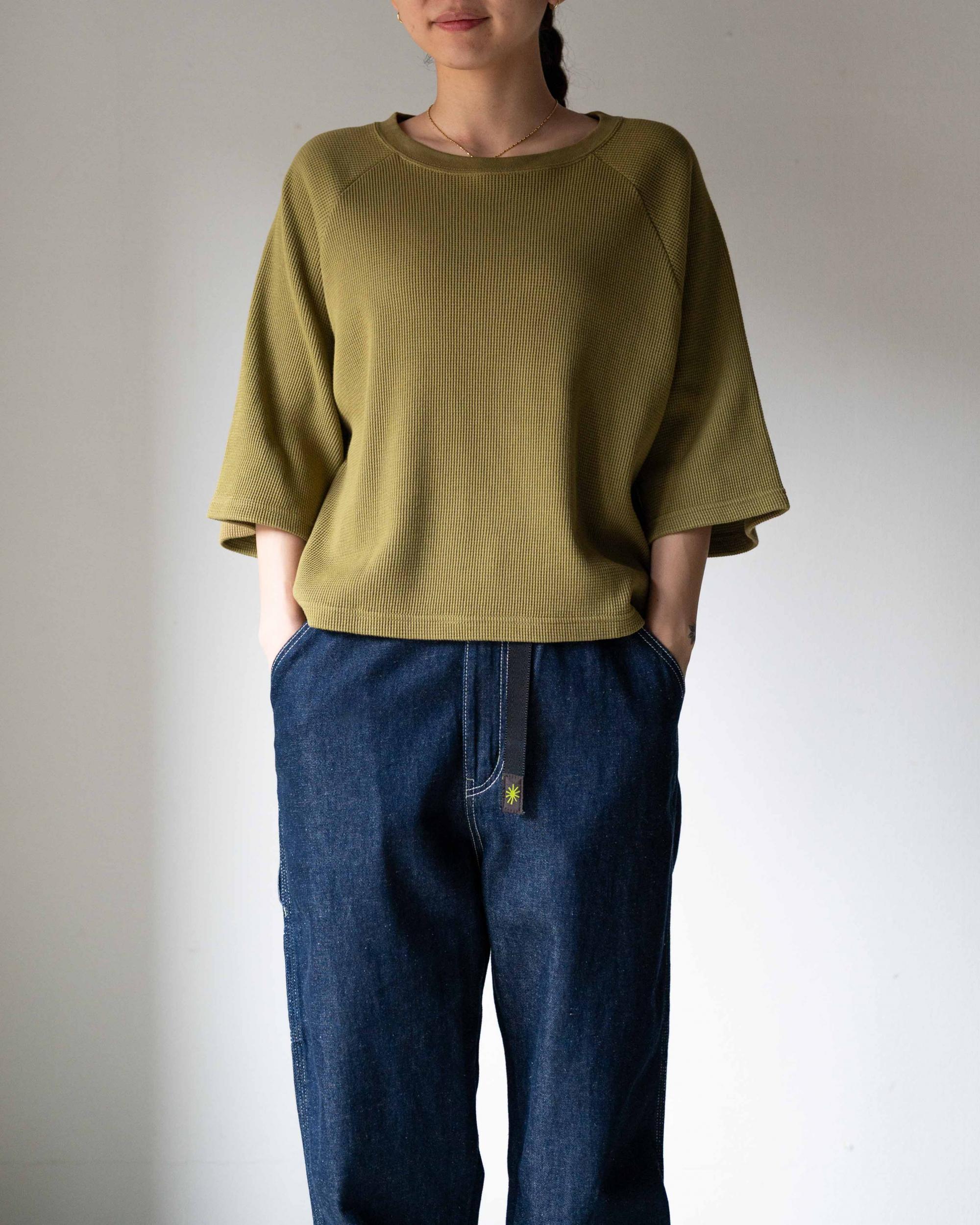 ミニワッフル素材の吸汗の働きに加え、ヘンプの特性である速乾により、暑い夏でも汗のべたつき抑え快適な着心地をキープします。