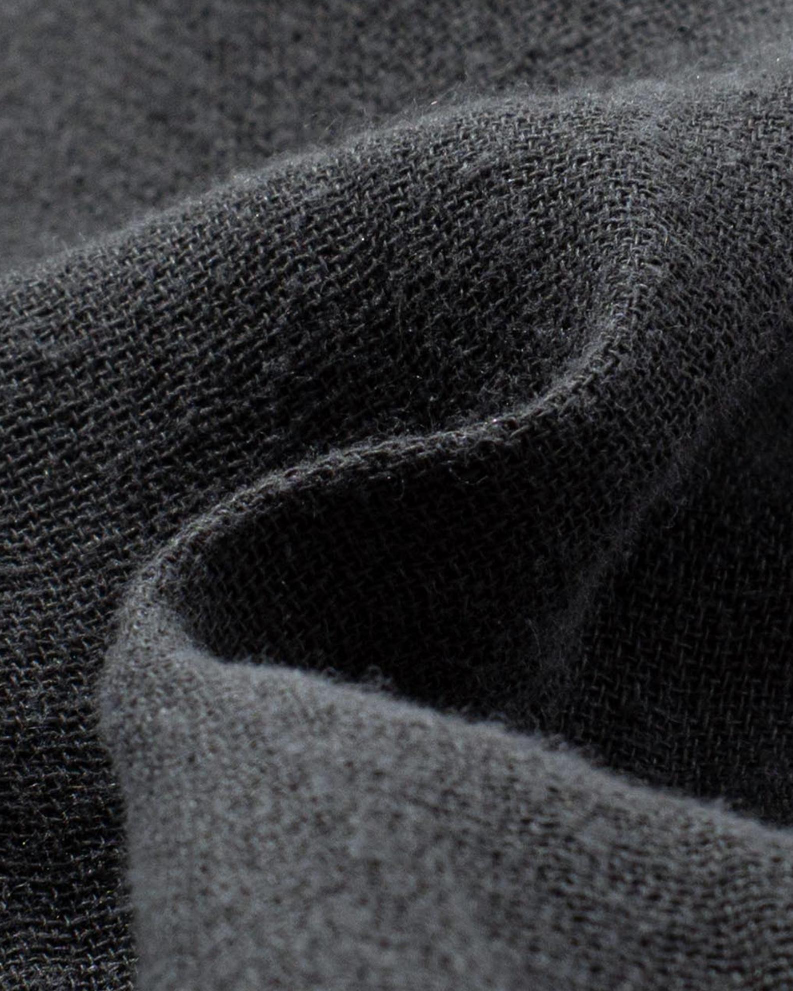 ヘンプ55%コットン45%から成り、吸水速乾に優れ重ね着の際の汗ばみや蒸れ感を軽減します。