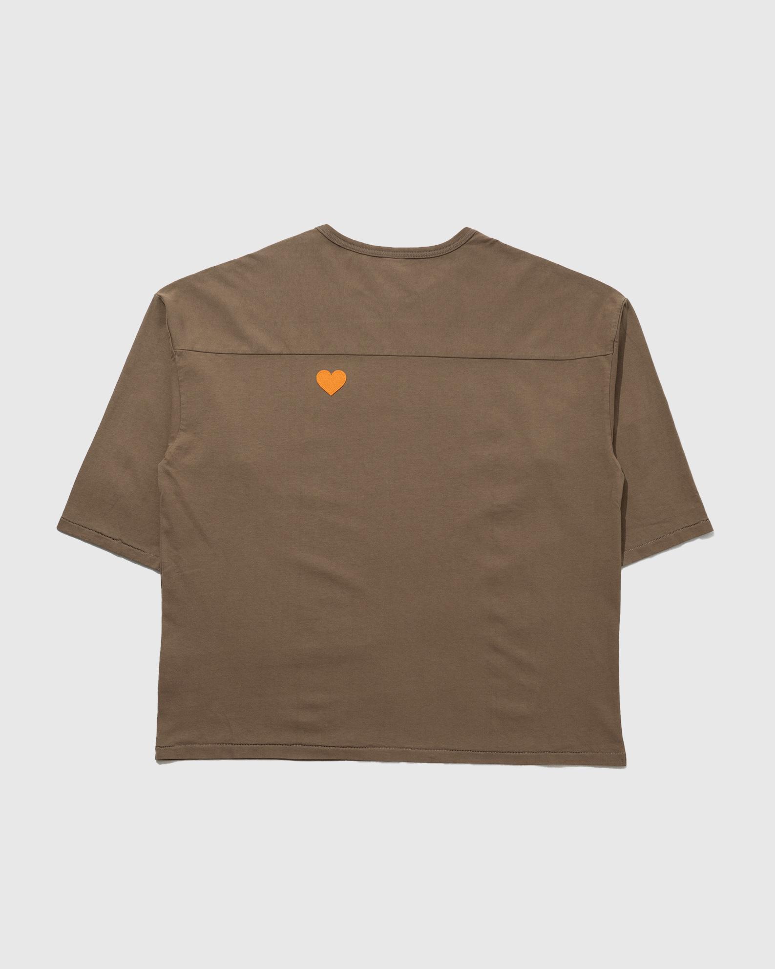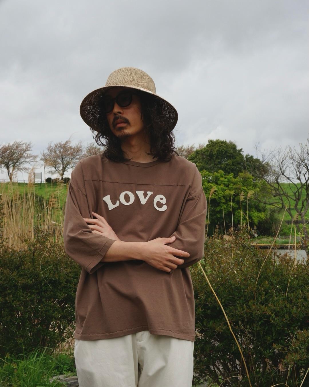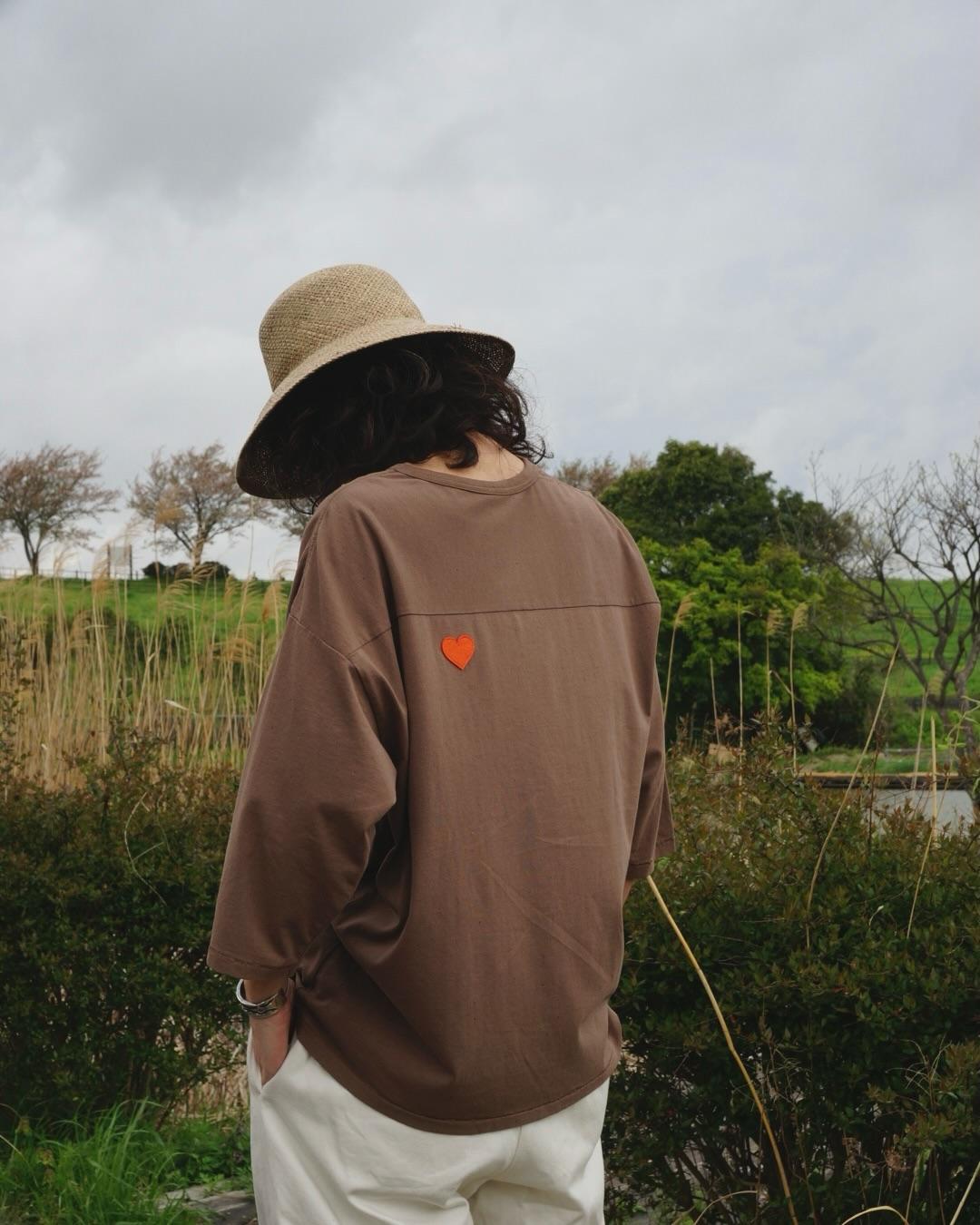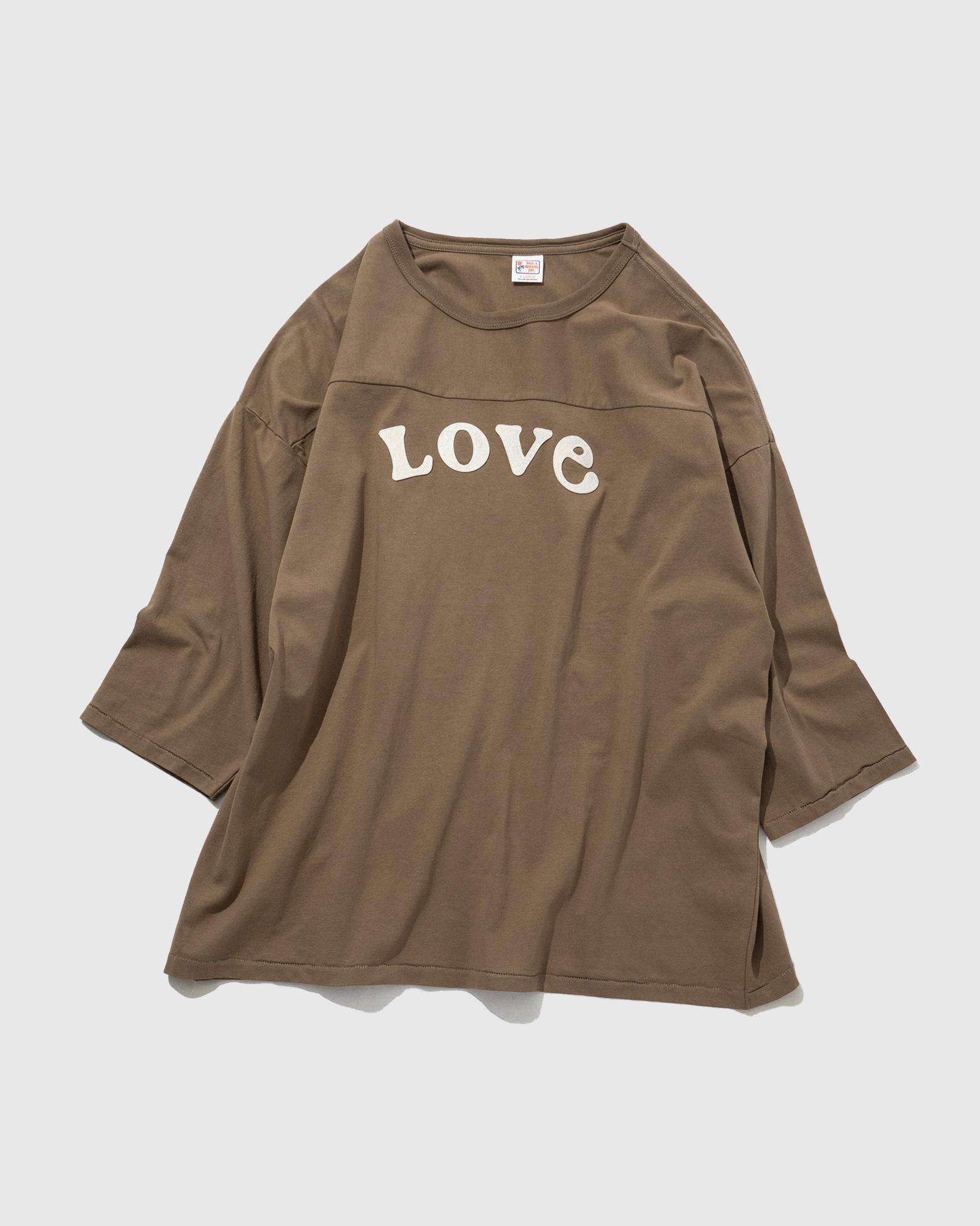 フェルトによる前面のロゴに加え、背面のハートがポイントになったフットボールTシャツ。