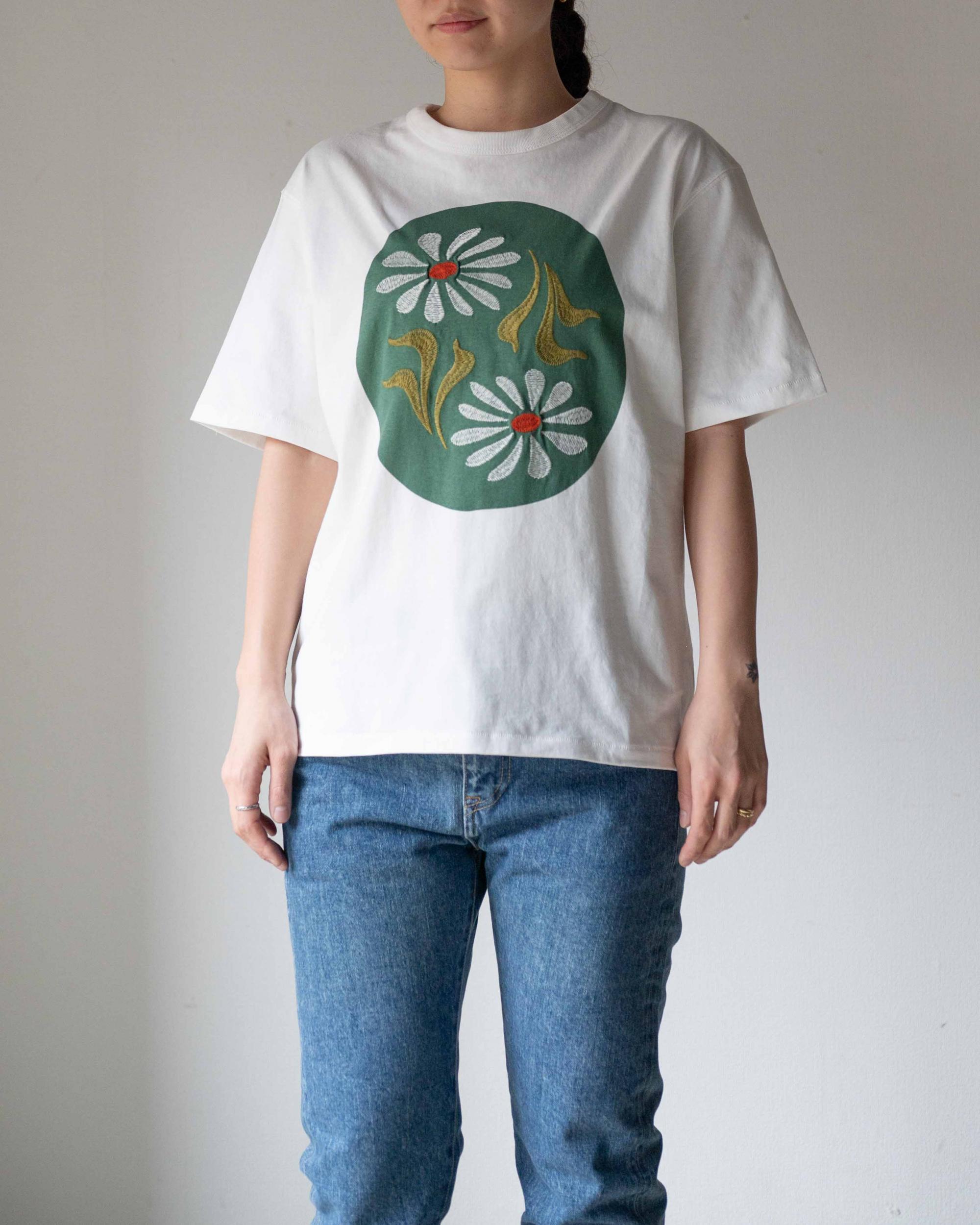 刺繍はあえて透け感のあるハンドステッチ風に仕上げています。厚過ぎない適度な肉感でドライな肌触りが特徴です。
