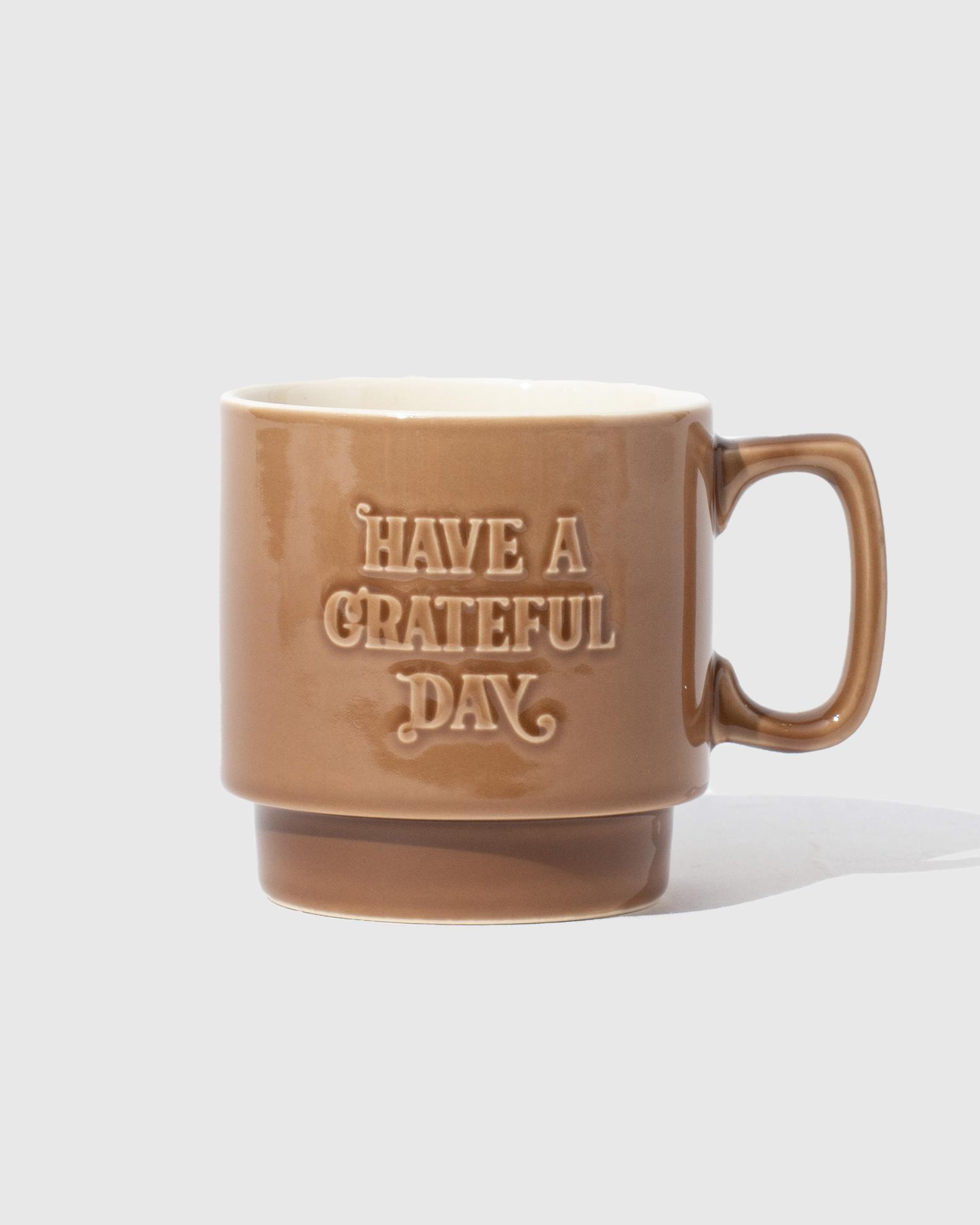 味わいのある色合いとエンボスロゴが特徴のオリジナルマグカップです。