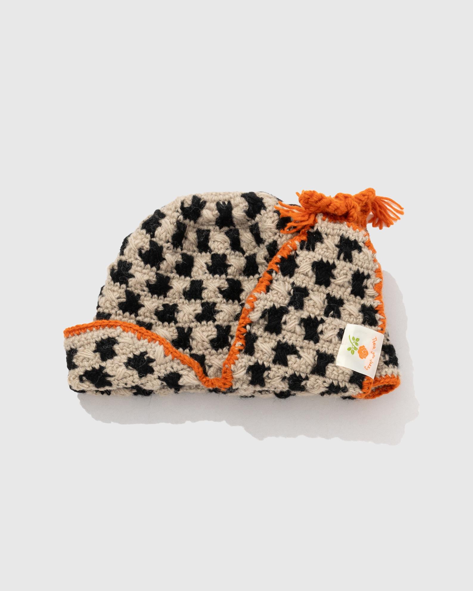 ハンドメイドで編み上げたフライトキャップ。