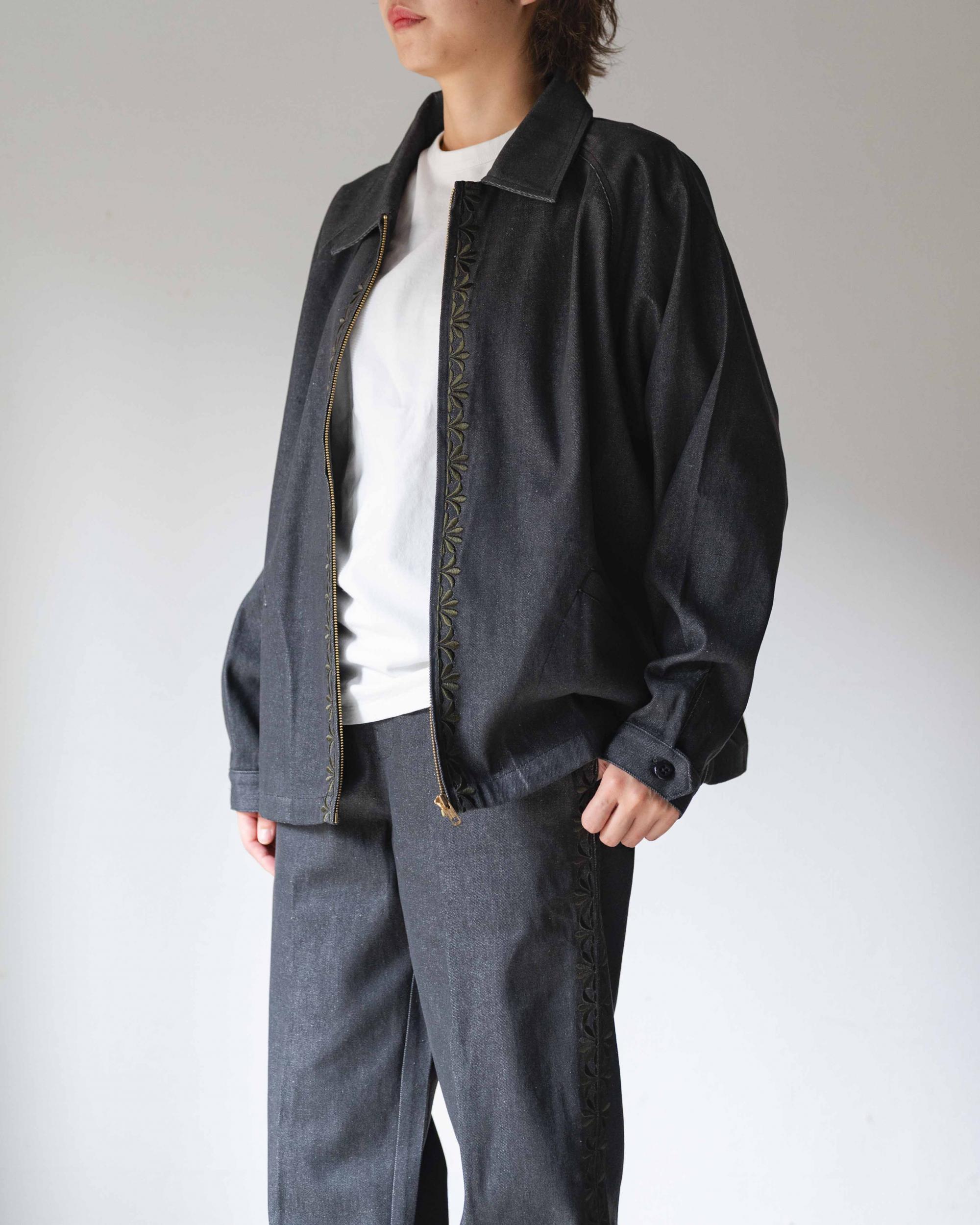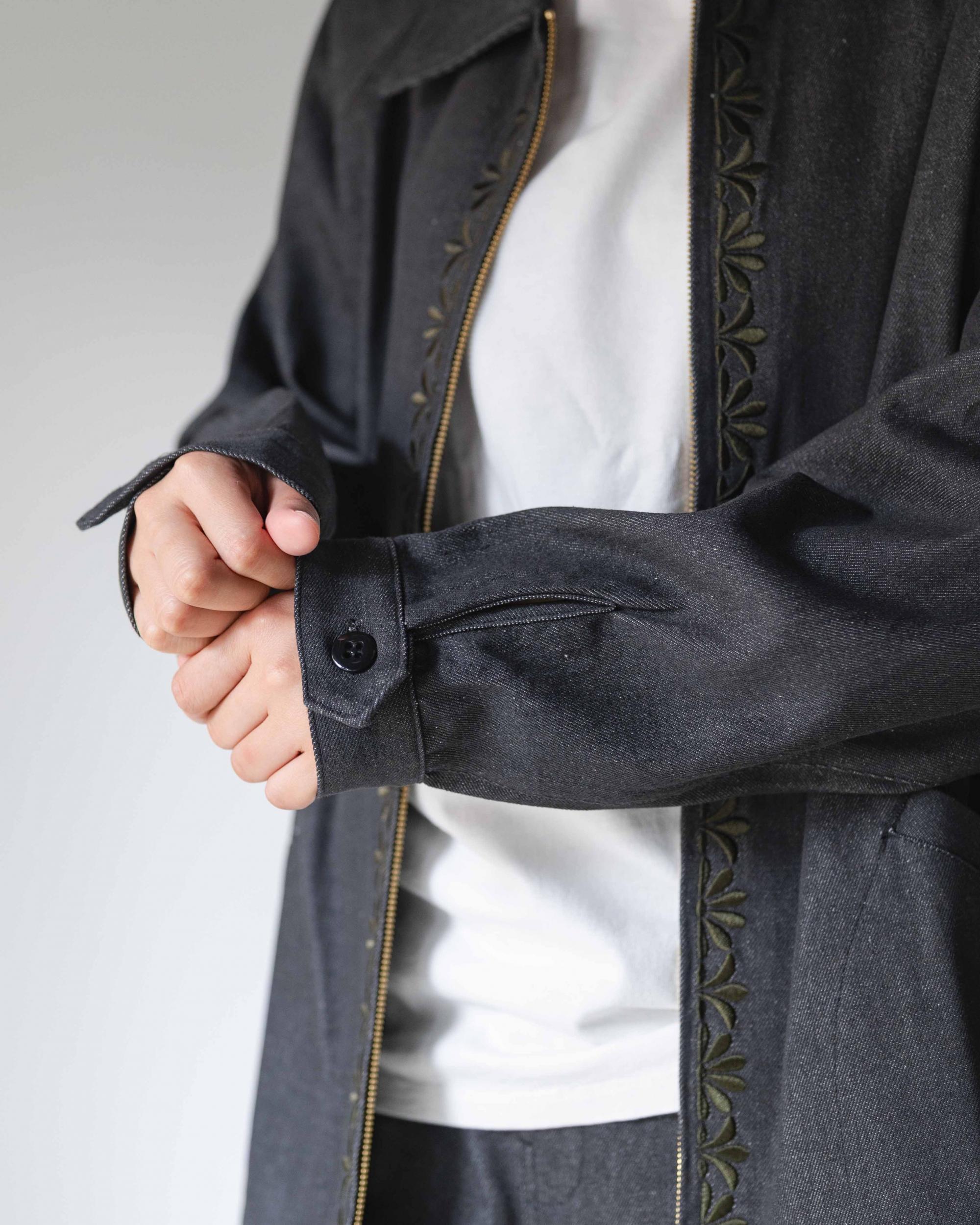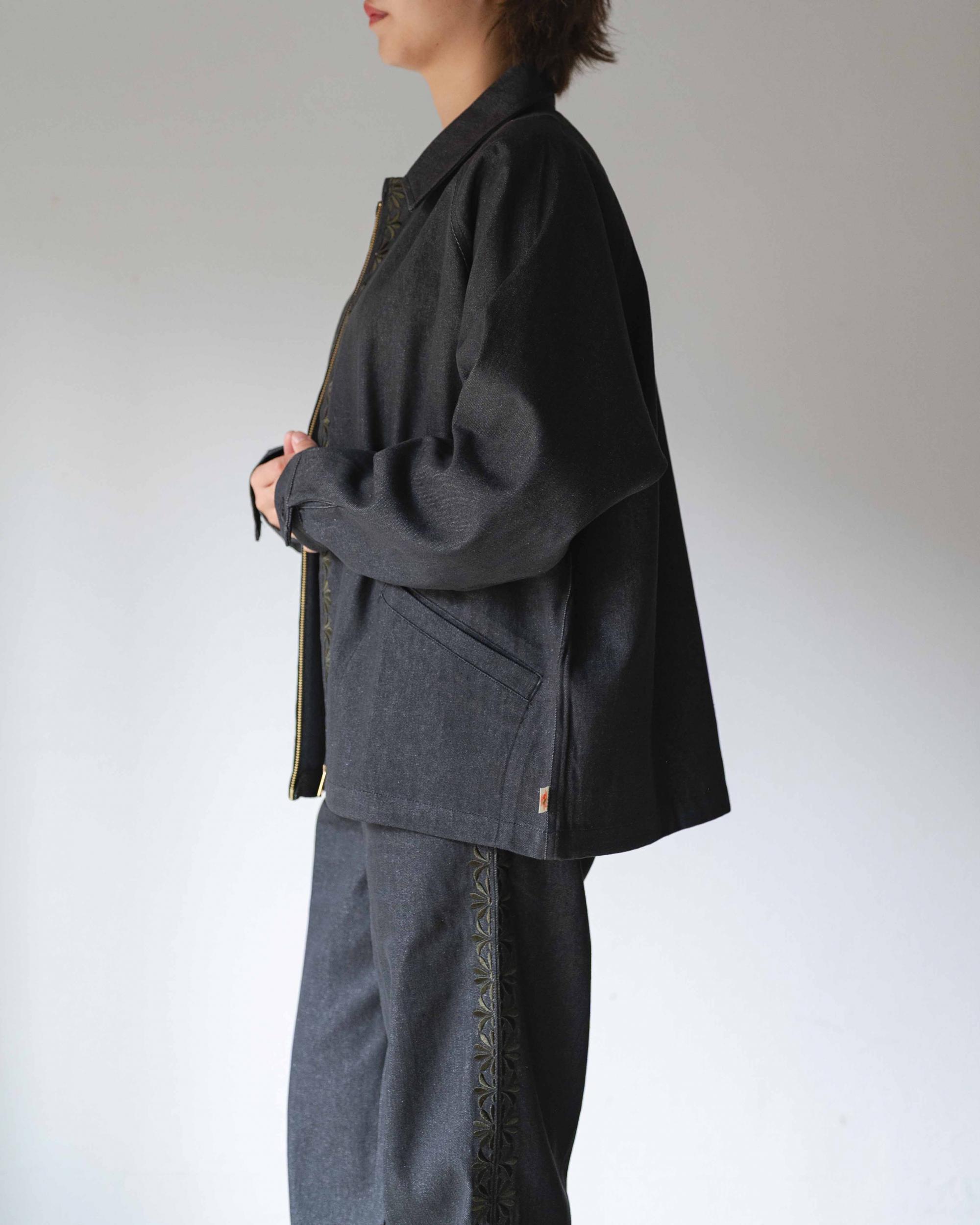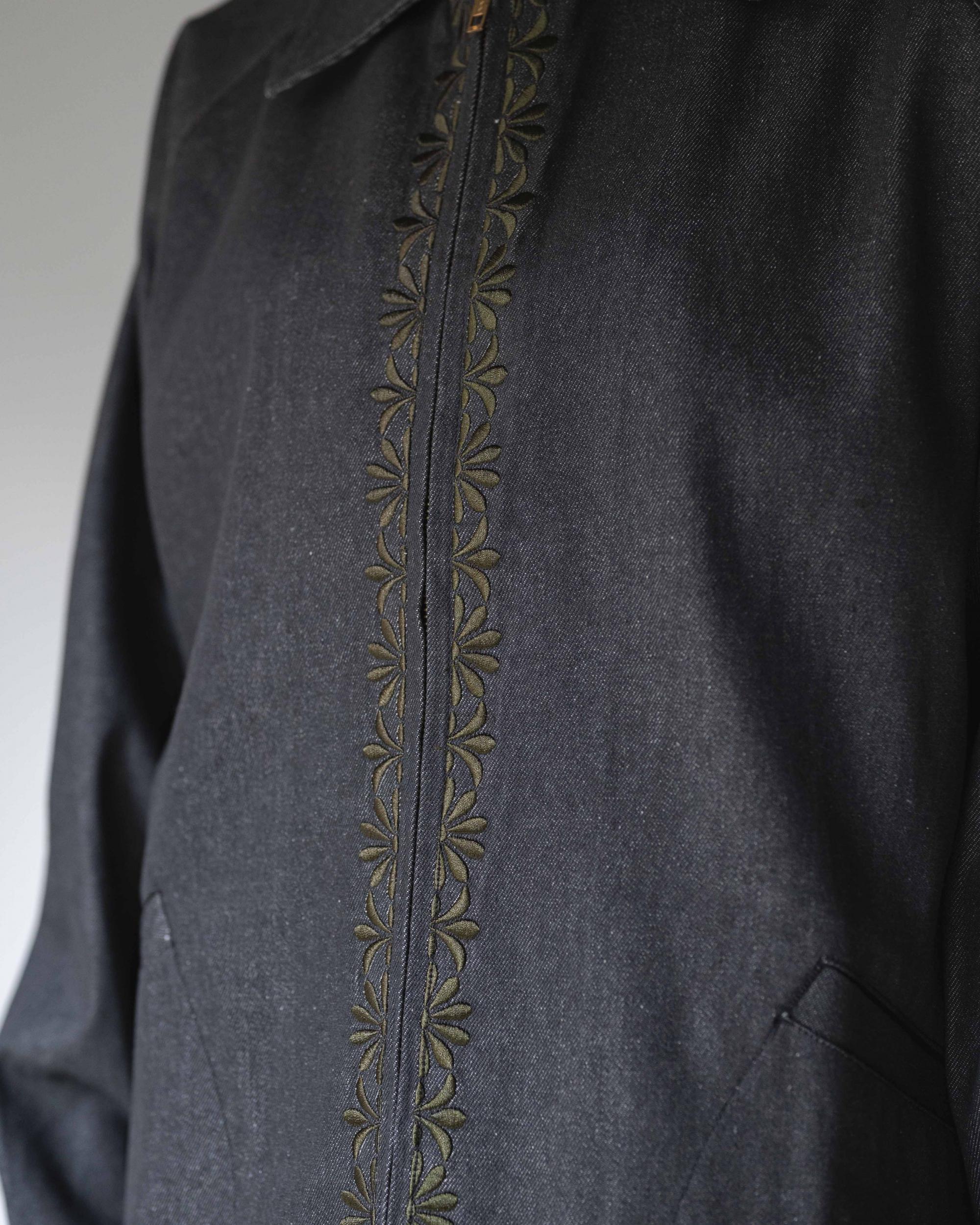 ヴィンテージ調のオリジナル刺繍を施したジャケットです。程よい厚みとハリのある10ozデニム生地を使用。