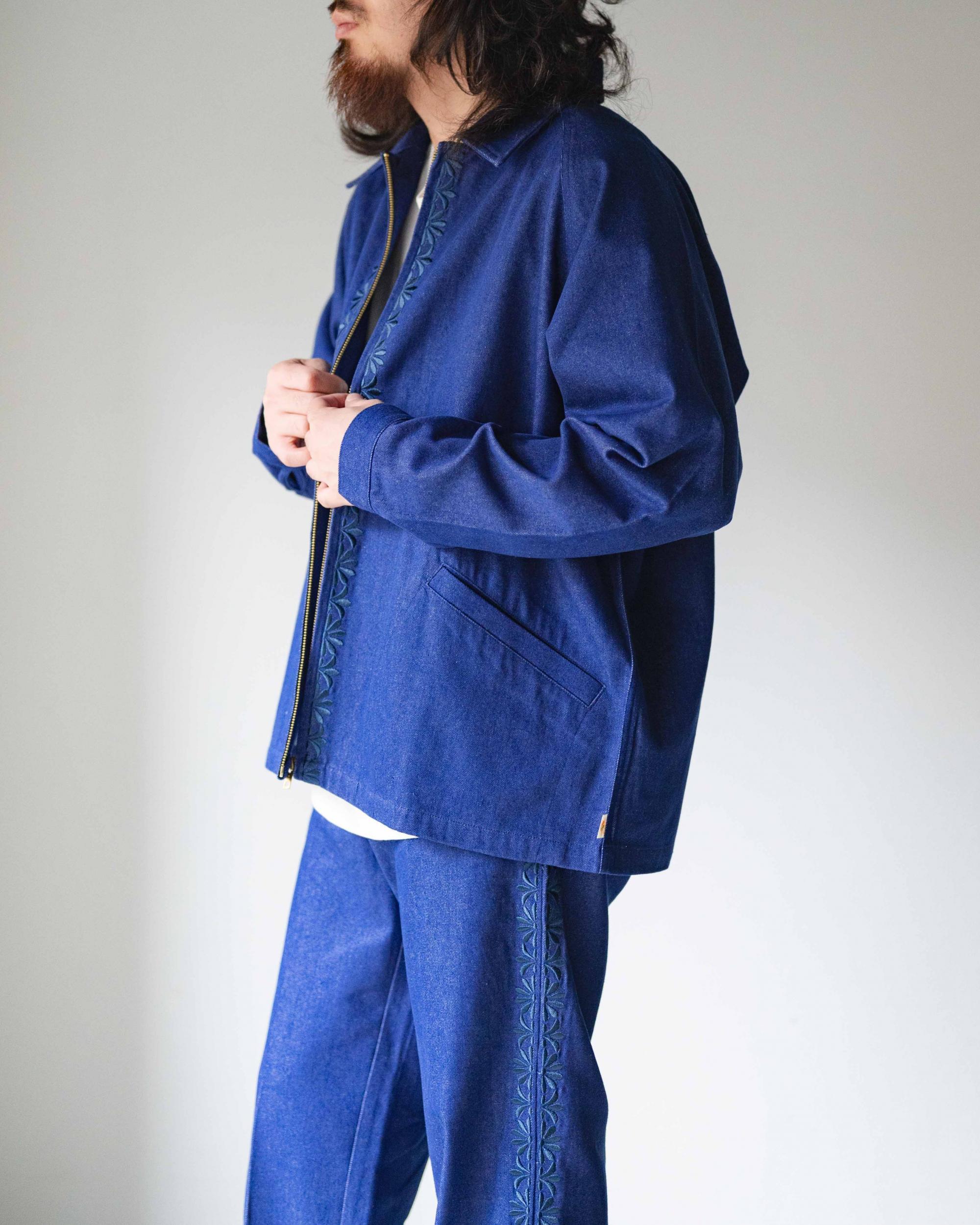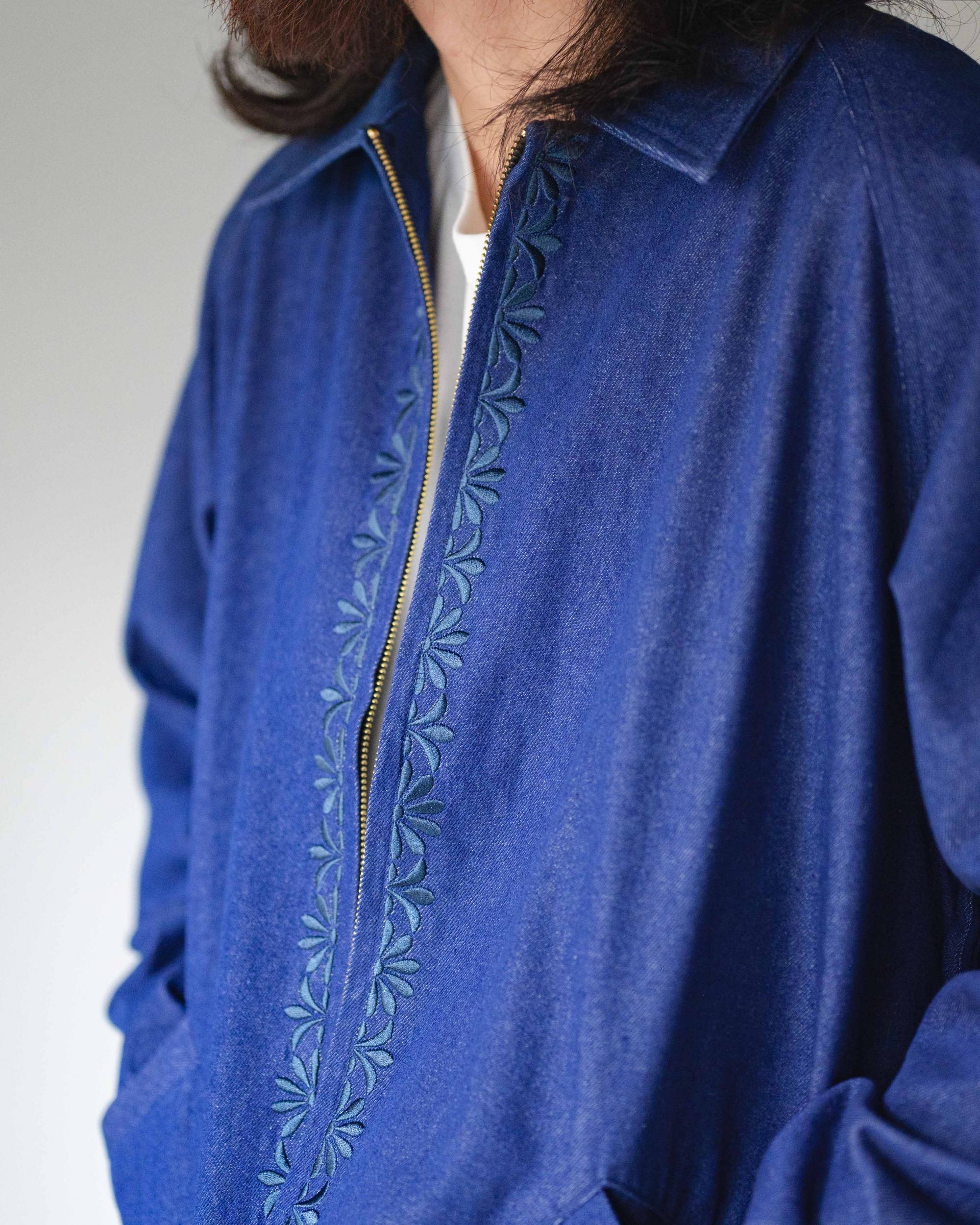 ヴィンテージ調のオリジナル刺繍を施したジャケットです。程よい厚みとハリのある10ozデニム生地を使用。