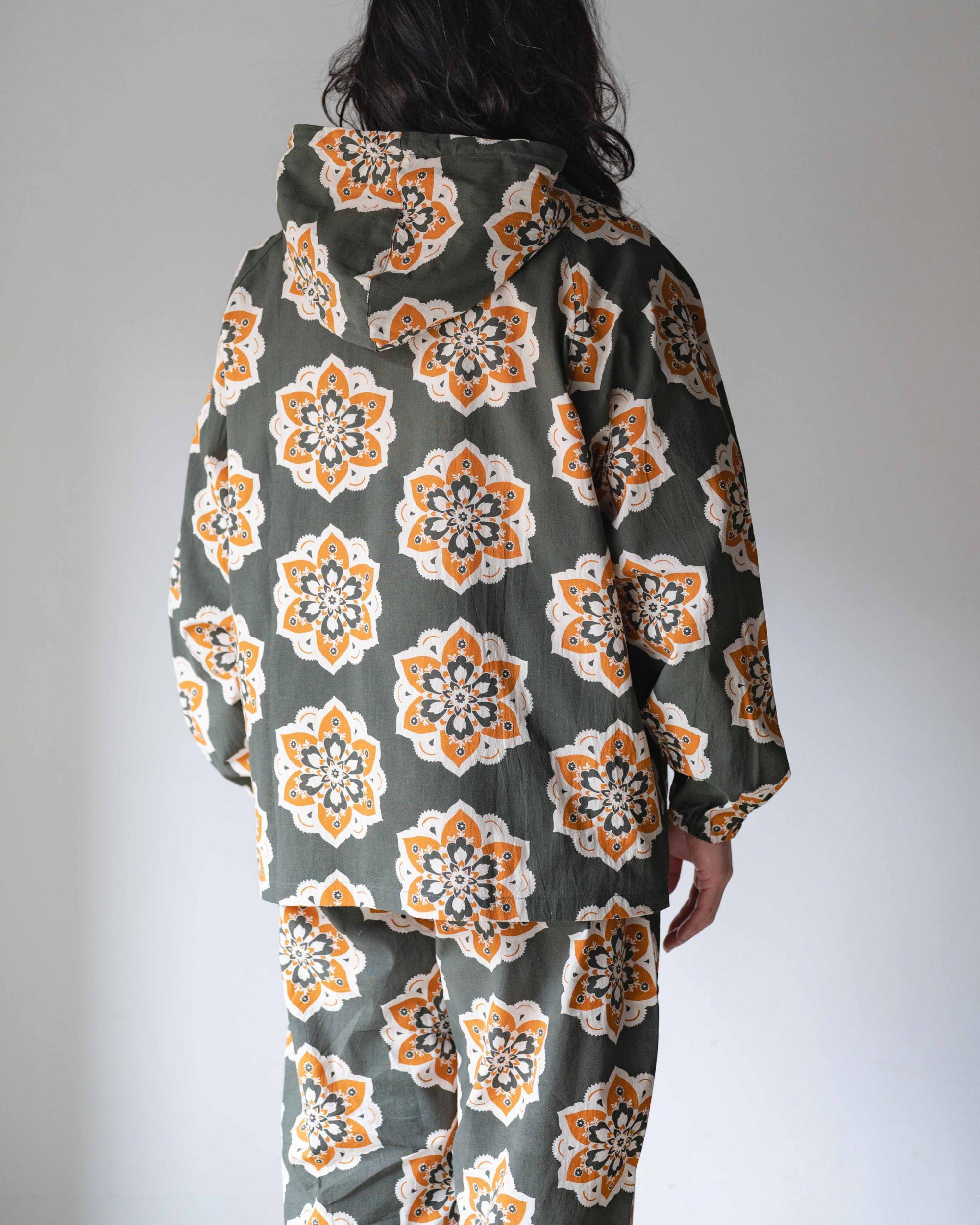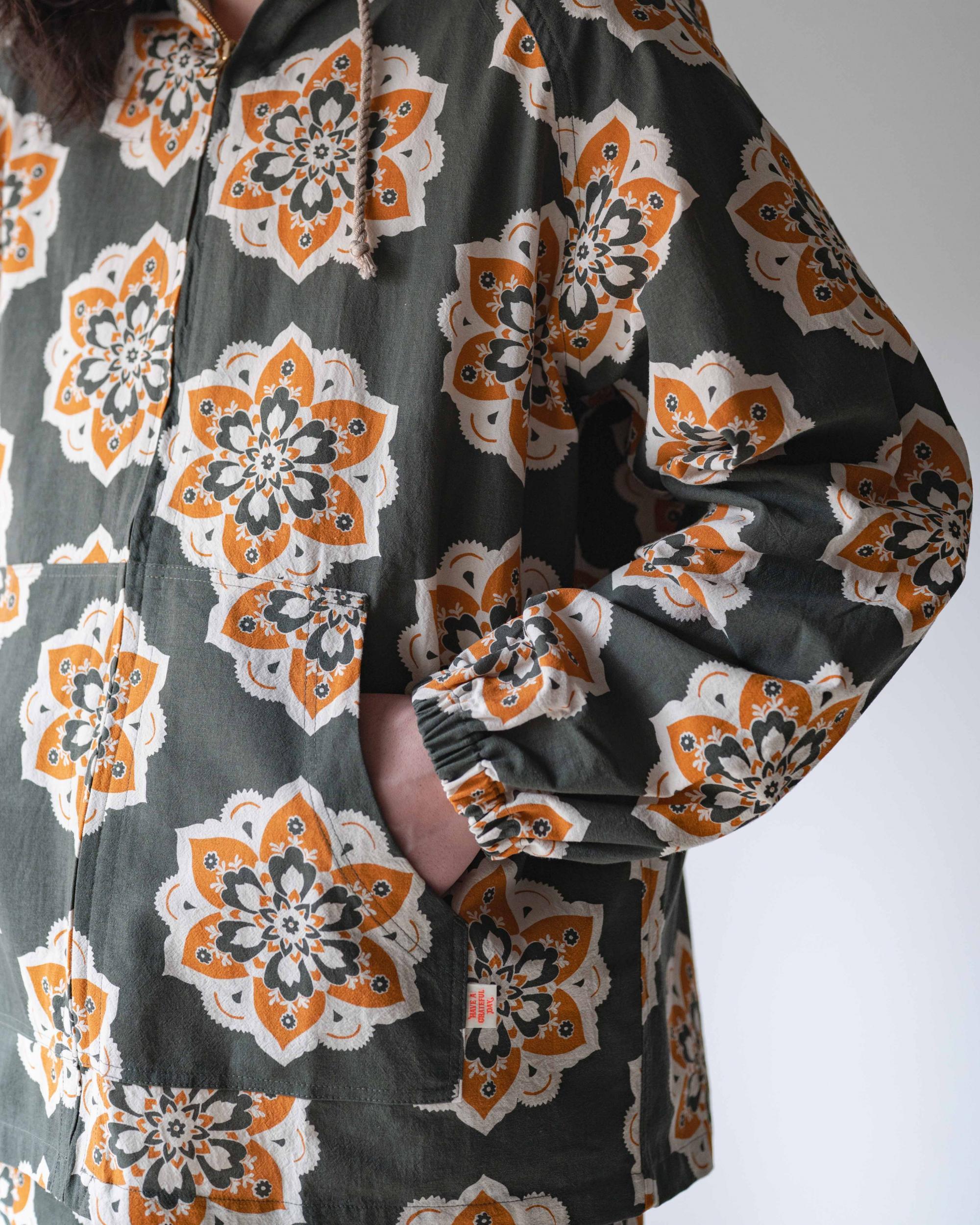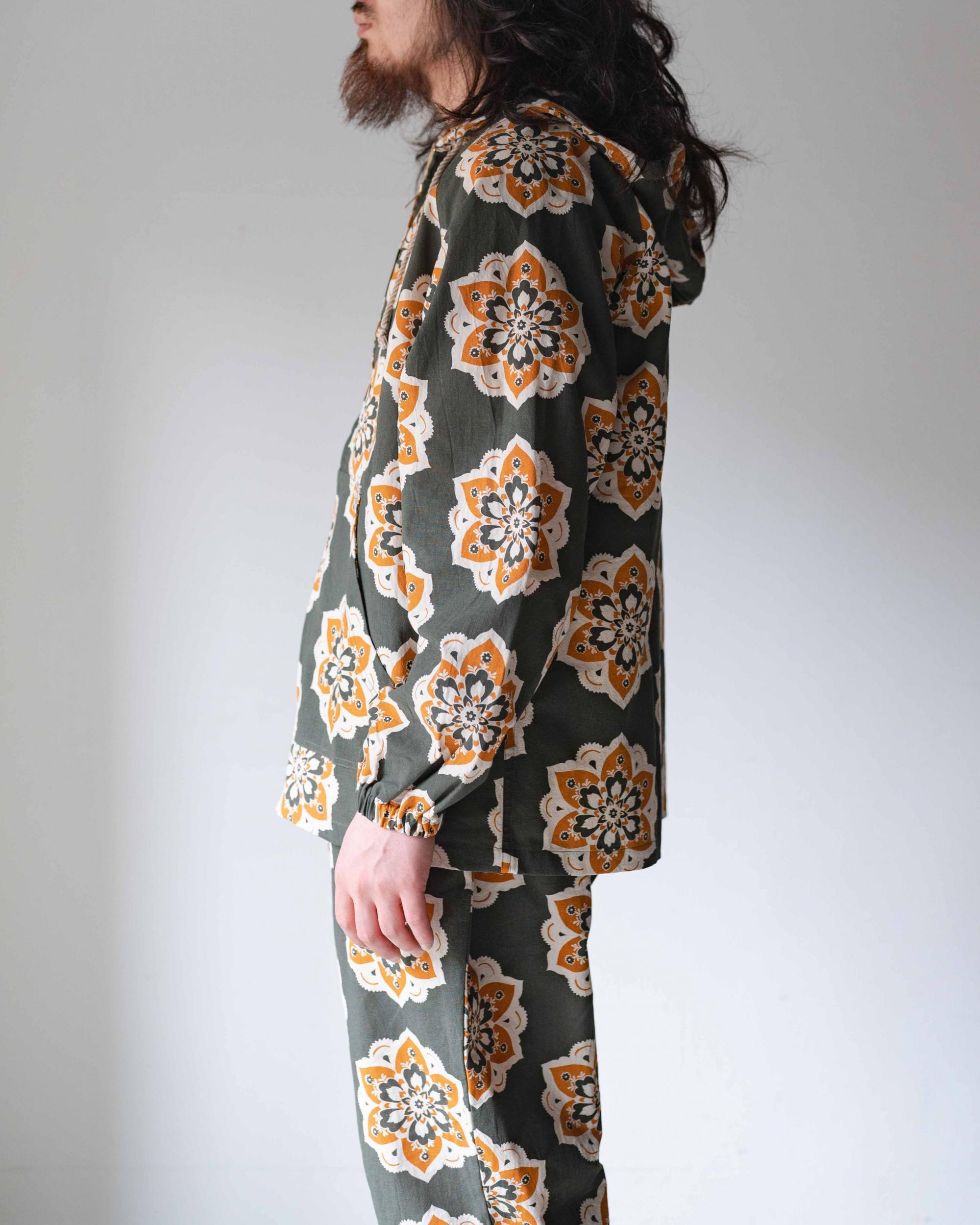 手間と時間のかかるシルクプリント仕上げにこだわりました。インクジェットとは異なり、長く使うことで色合いや風合いの深みが増し経年変化を楽しめます。1年を通して着用しやすい中肉のコットン生地を使用。