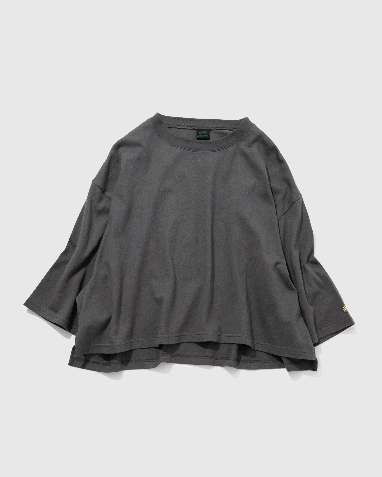 身幅も袖もワイドなショート丈のTシャツです。
