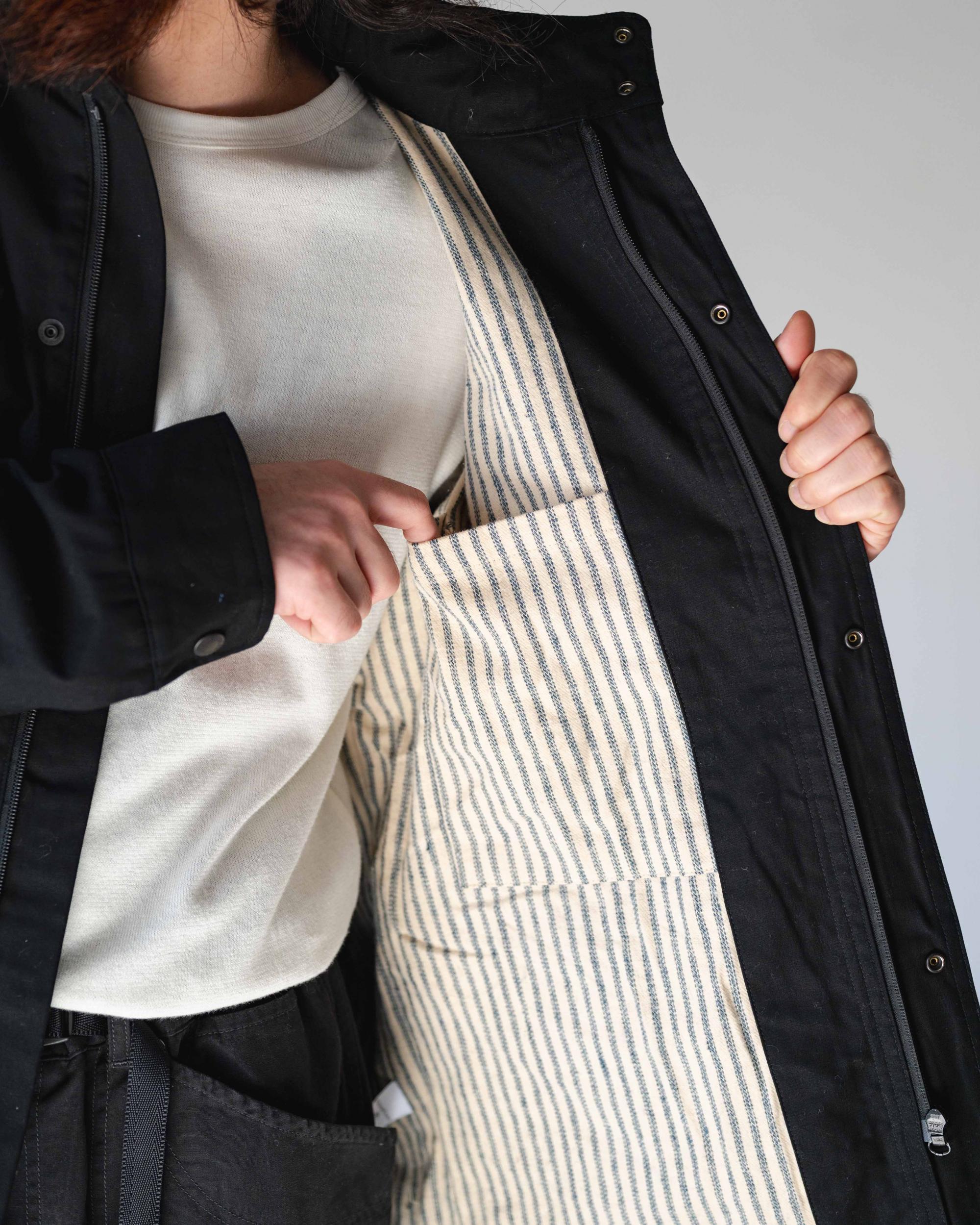 見た目だけでなくGOHEMPらしいメッセージ性がポイントです。首まわりに収納可能な簡易フードやフラップポケットなどM65のディテールを採用し、シルエットを現代的にアップデートしています。
