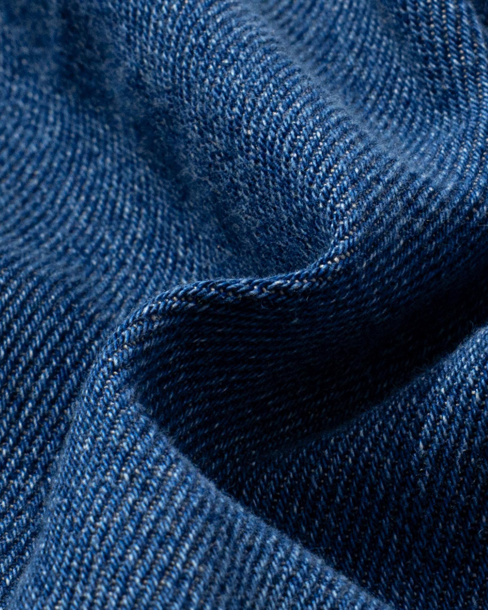 優れた肌触りと吸湿速乾が特性のヘンプを加えたオリジナル9ozデニムを使用。