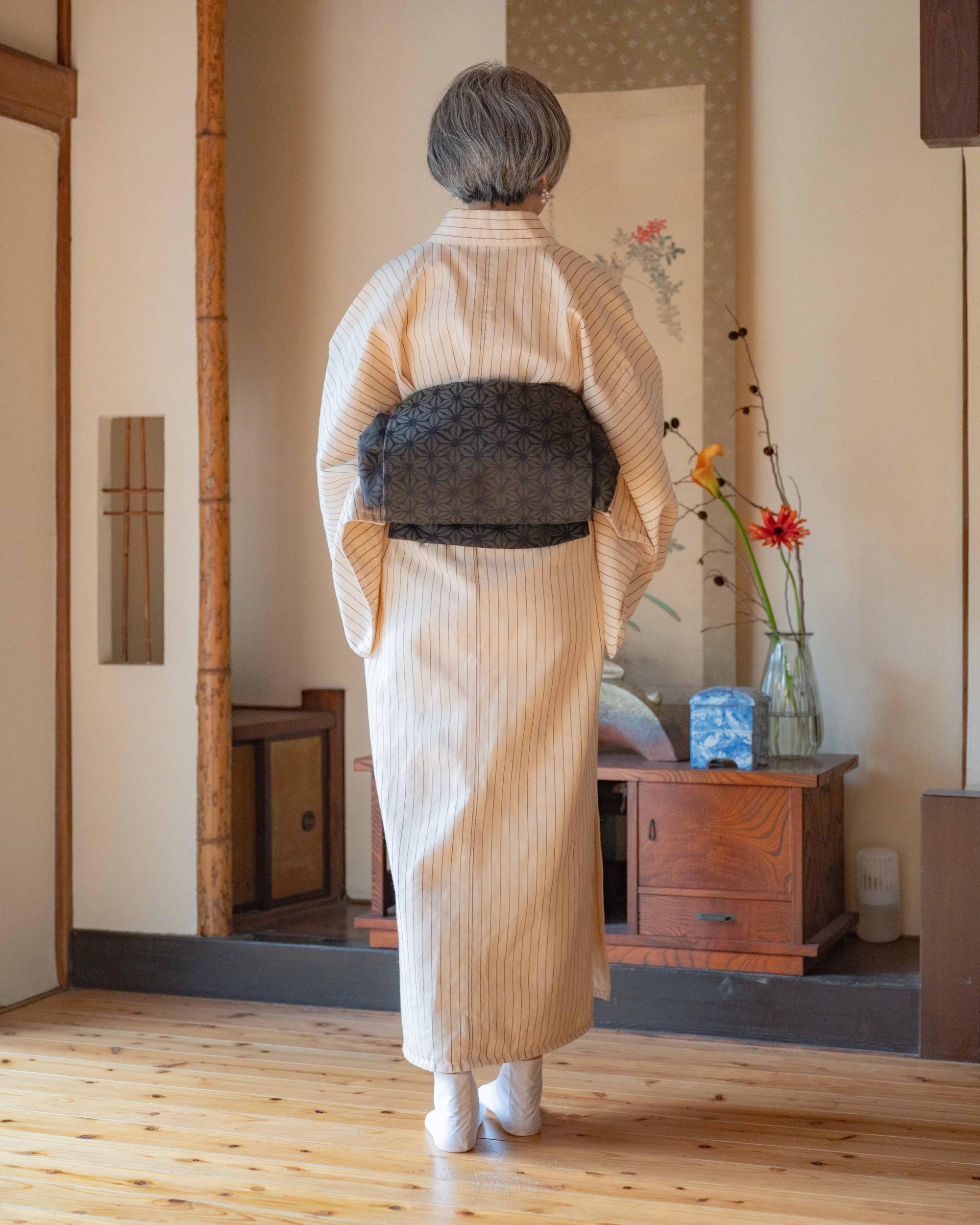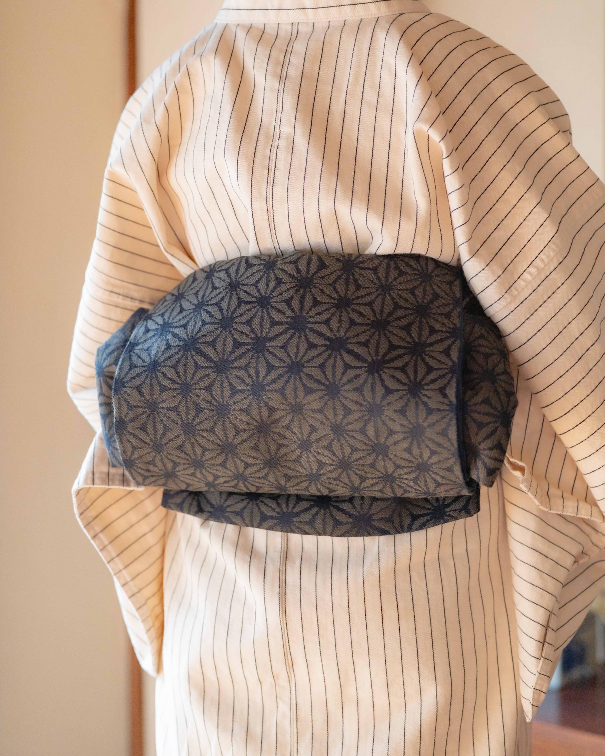 また、麻柄模様のジャガード生地でできた帯(OBI/別売)は改良と工夫を重ね、